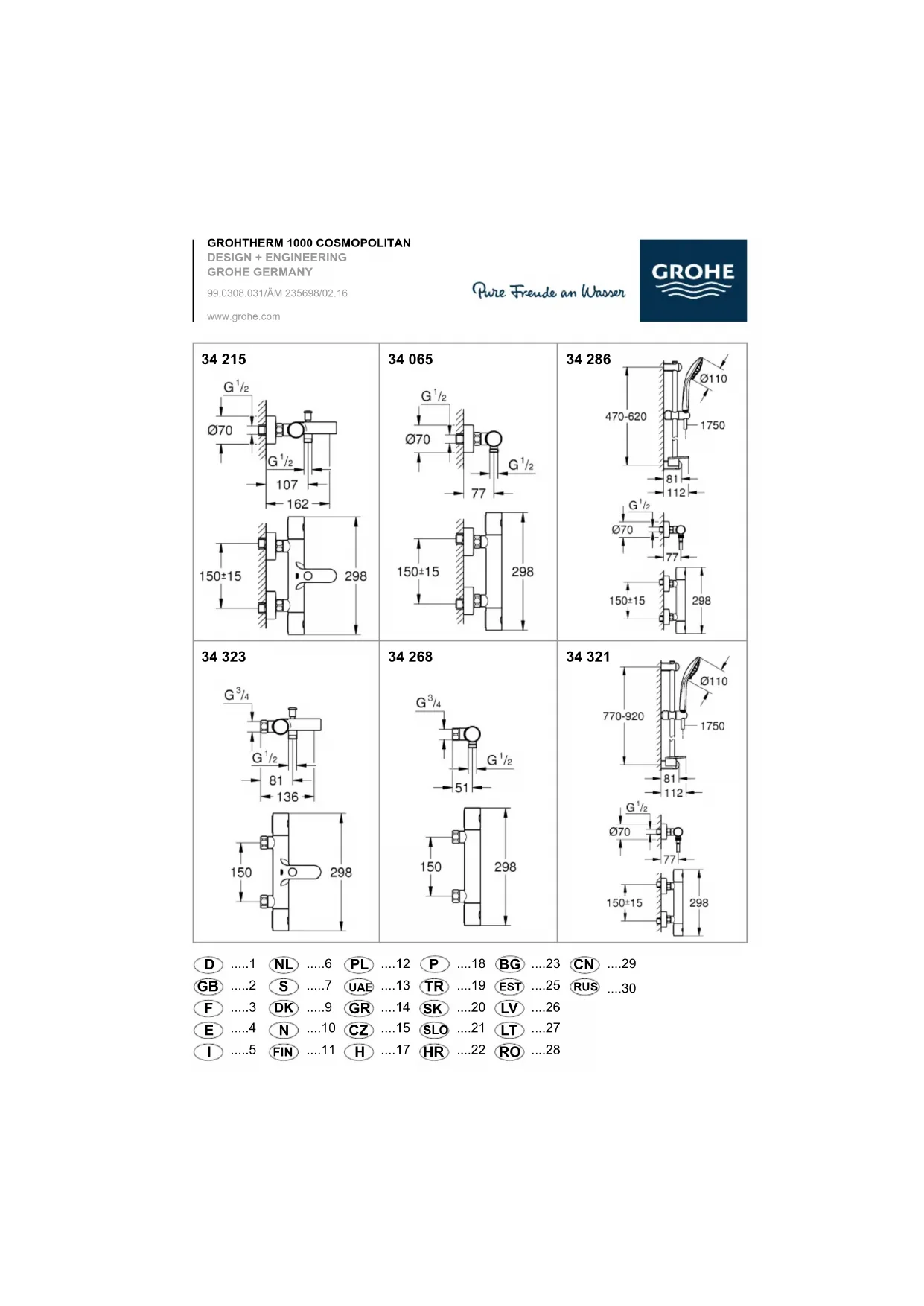 Grohtherm 1000 Cosmopolitan - Sanitaire GROHE - Notice d'utilisation et mode d'emploi gratuit