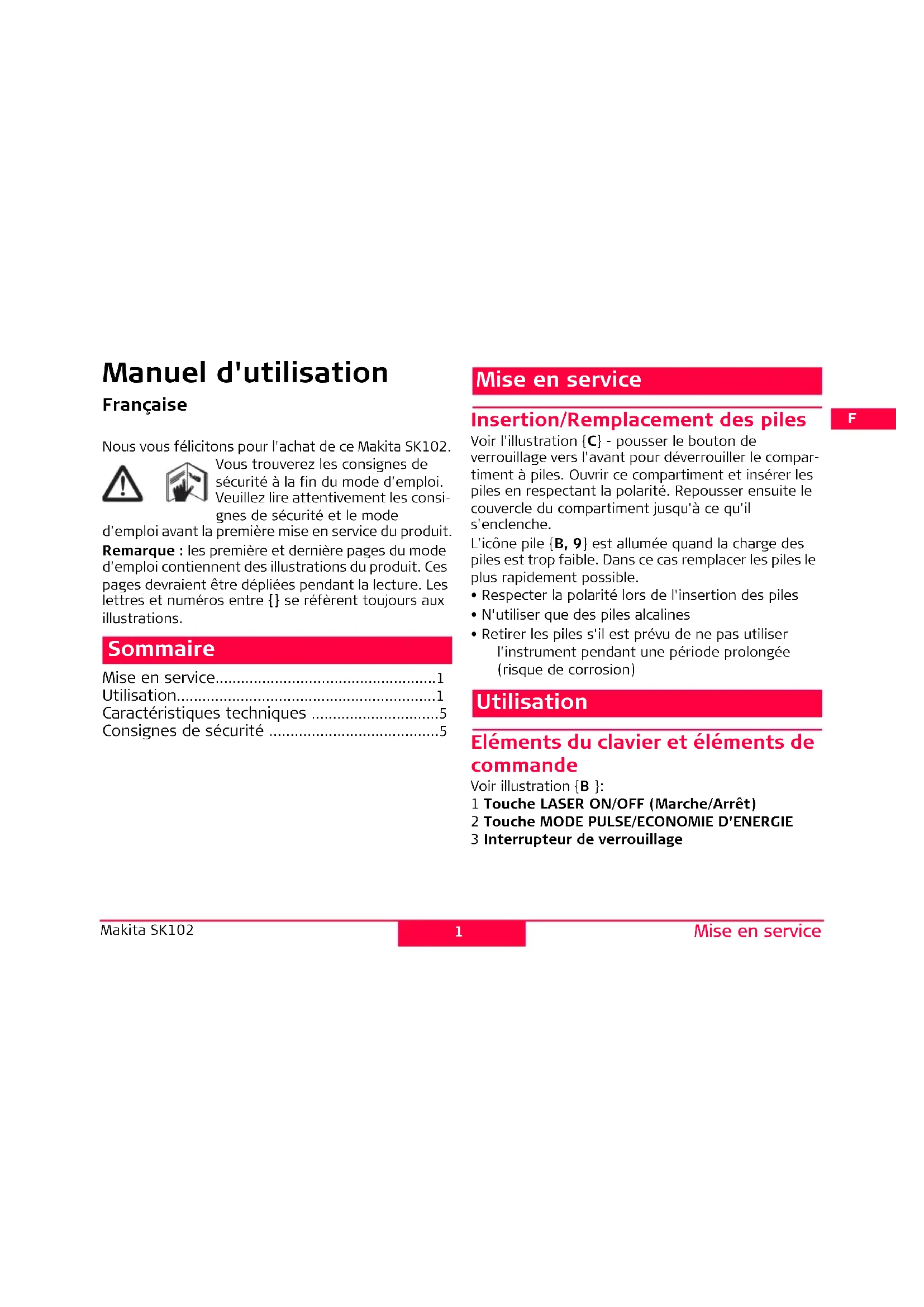 Nous vous félicitons pour l'achat de ce Makita SK102.
