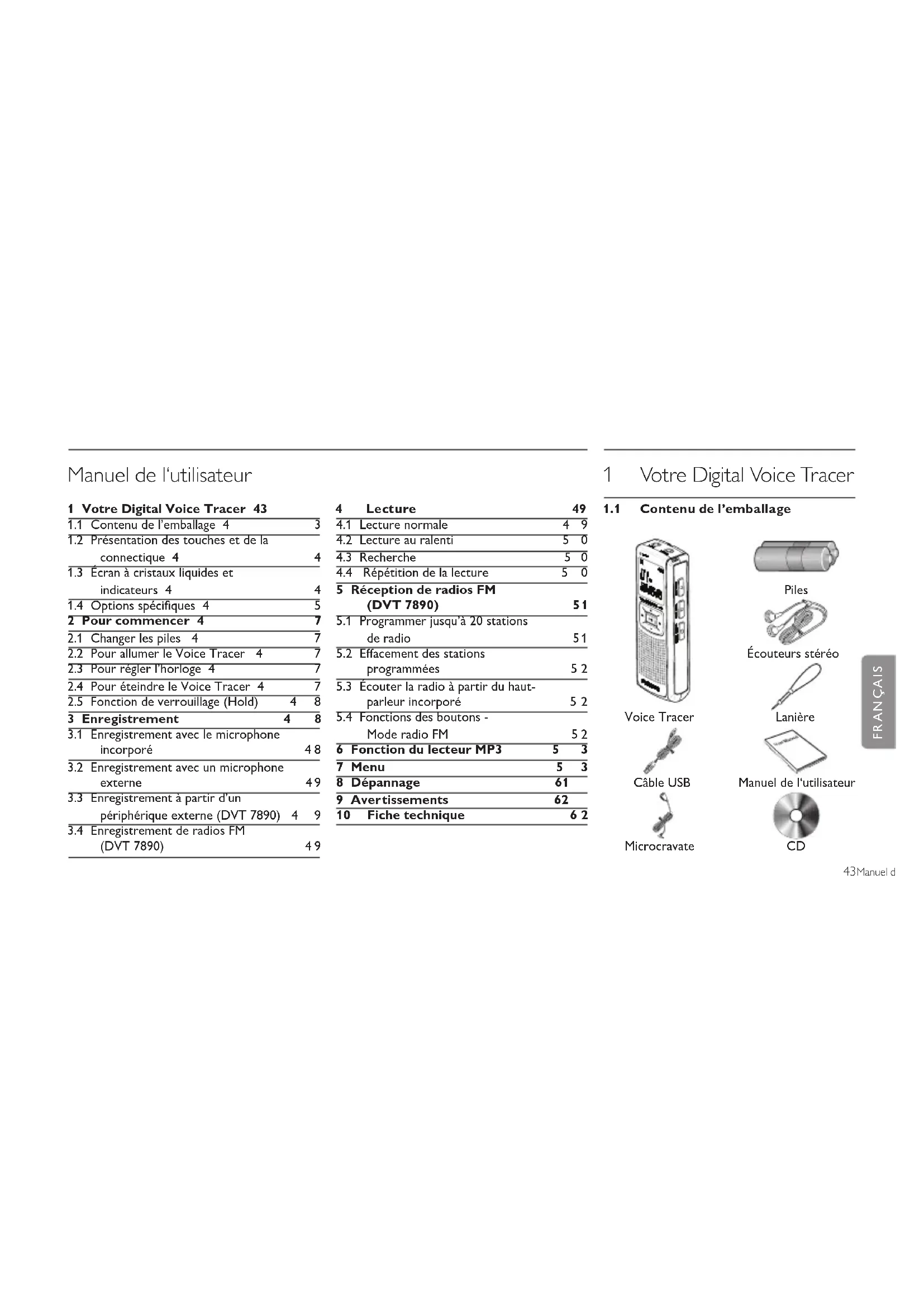 - 43Manuel de l‘utilisateur 1 Votre Digital Voice Tracer 43