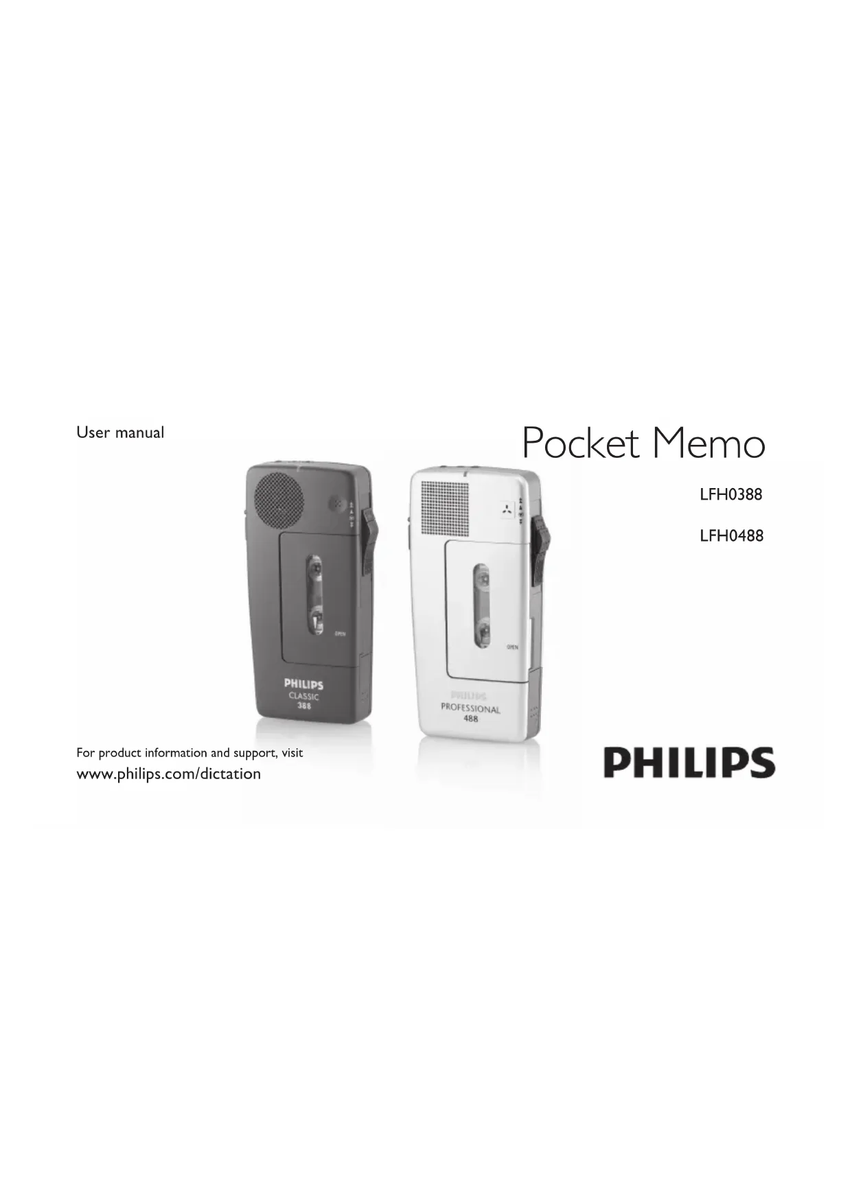 Retrouvez gratuitement la notice de l'appareil Pocket Memo LFH0388 PHILIPS au format PDF.
