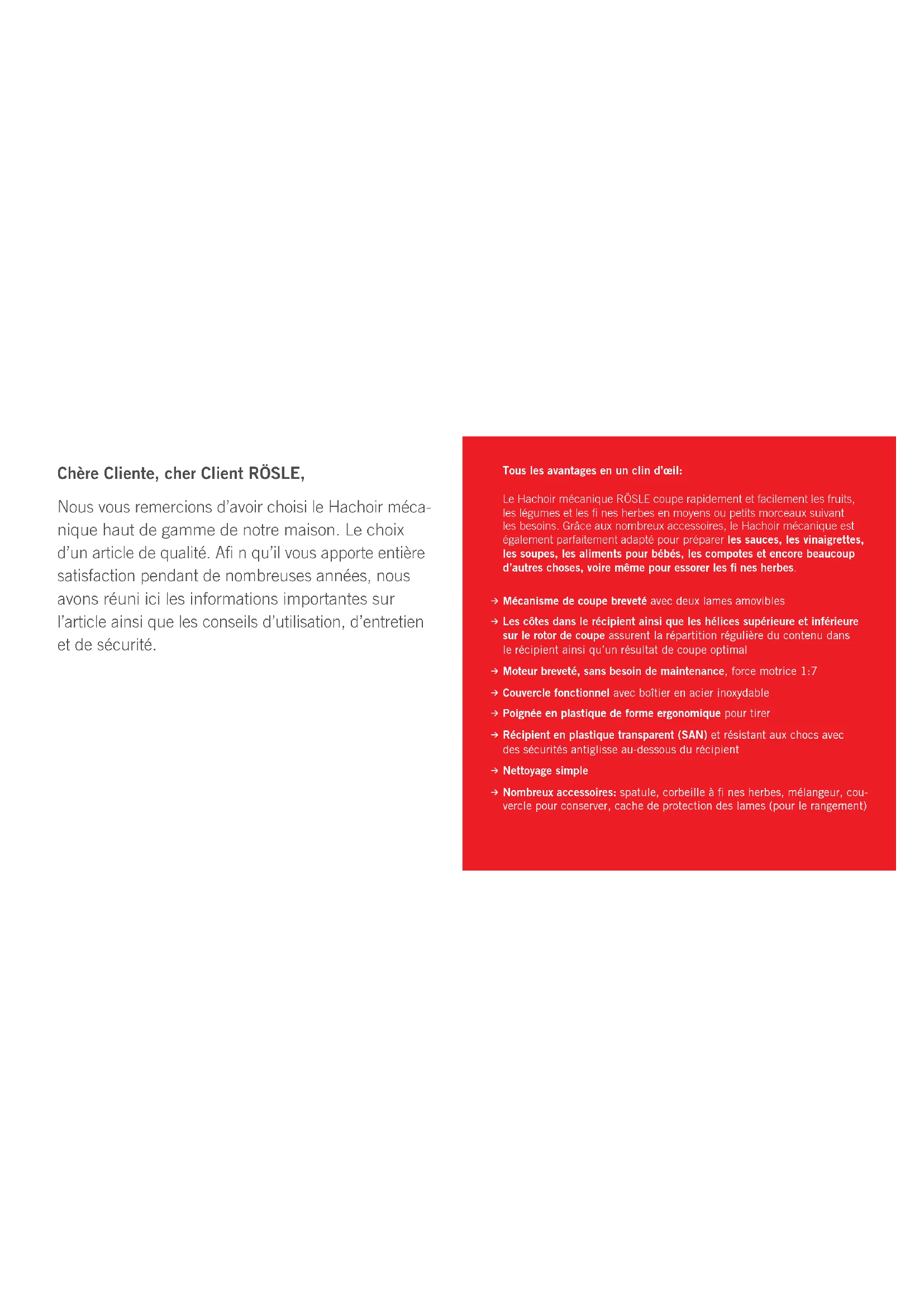 Nous vous souhaitons entière satisfaction et plaisir avec votre nouvel ustensile RÖSLE.