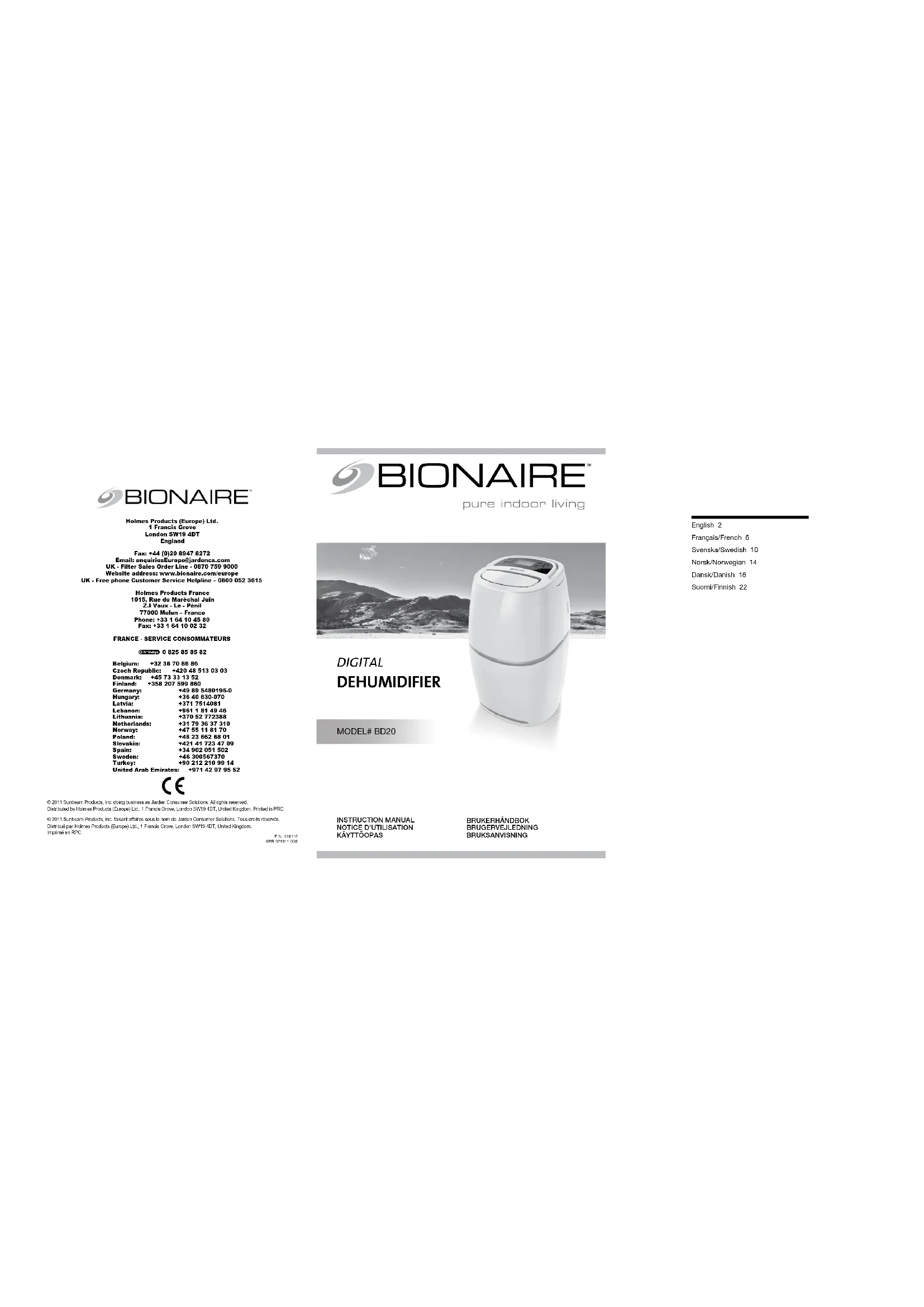 Retrouvez gratuitement la notice de l'appareil BD20 BIONAIRE au format PDF.
