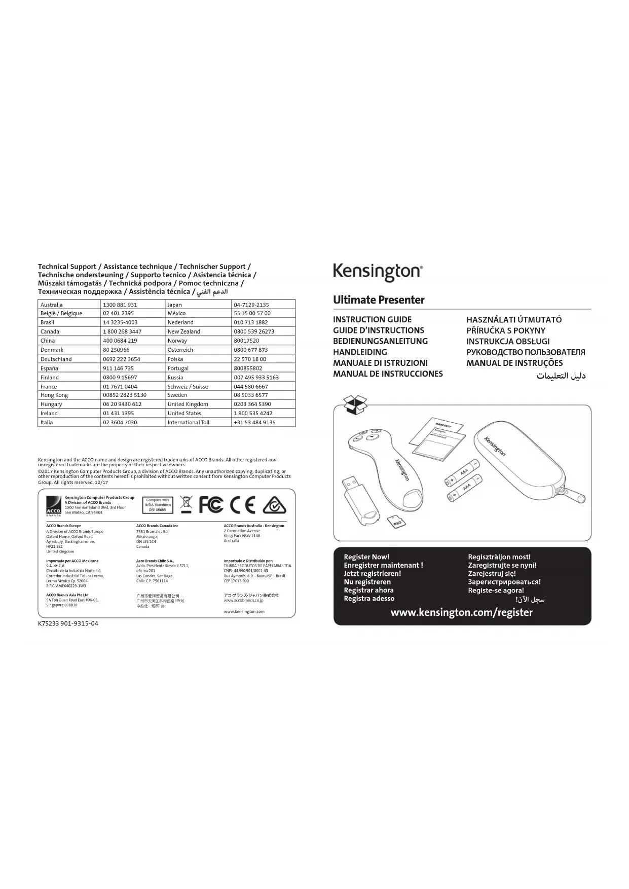 Téléchargez la notice de votre Pointeur laser au format PDF gratuitement ! Retrouvez votre notice K75233EU - KENSINGTON et reprennez votre appareil électronique en main. Sur cette page sont publiés tous les documents nécessaires à l'utilisation de votre appareil K75233EU de la marque KENSINGTON.