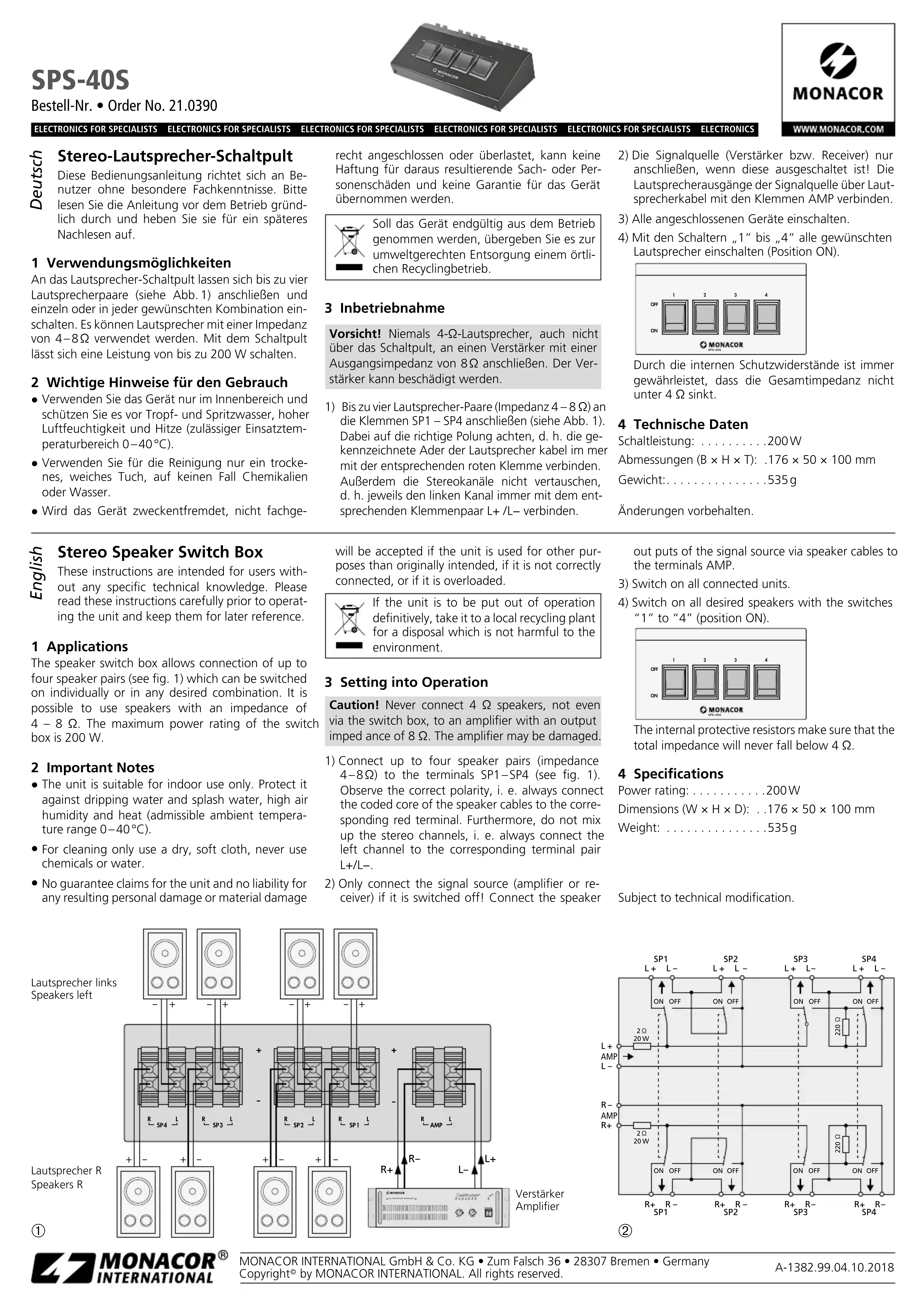 SPS40S - Commutateur Monacor - Notice d'utilisation et mode d'emploi gratuit