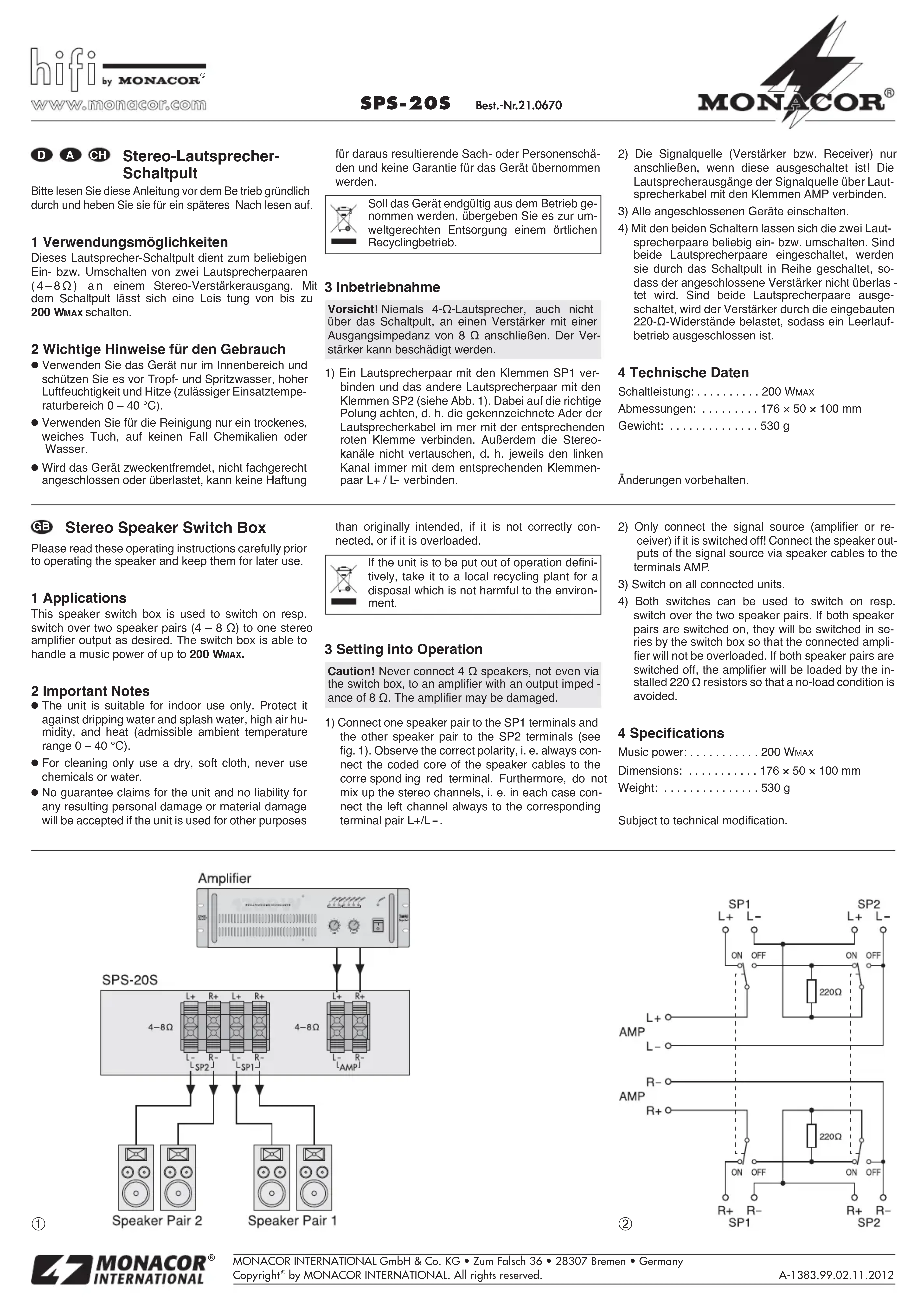 SPS20S - Commutateur Monacor - Notice d'utilisation et mode d'emploi gratuit