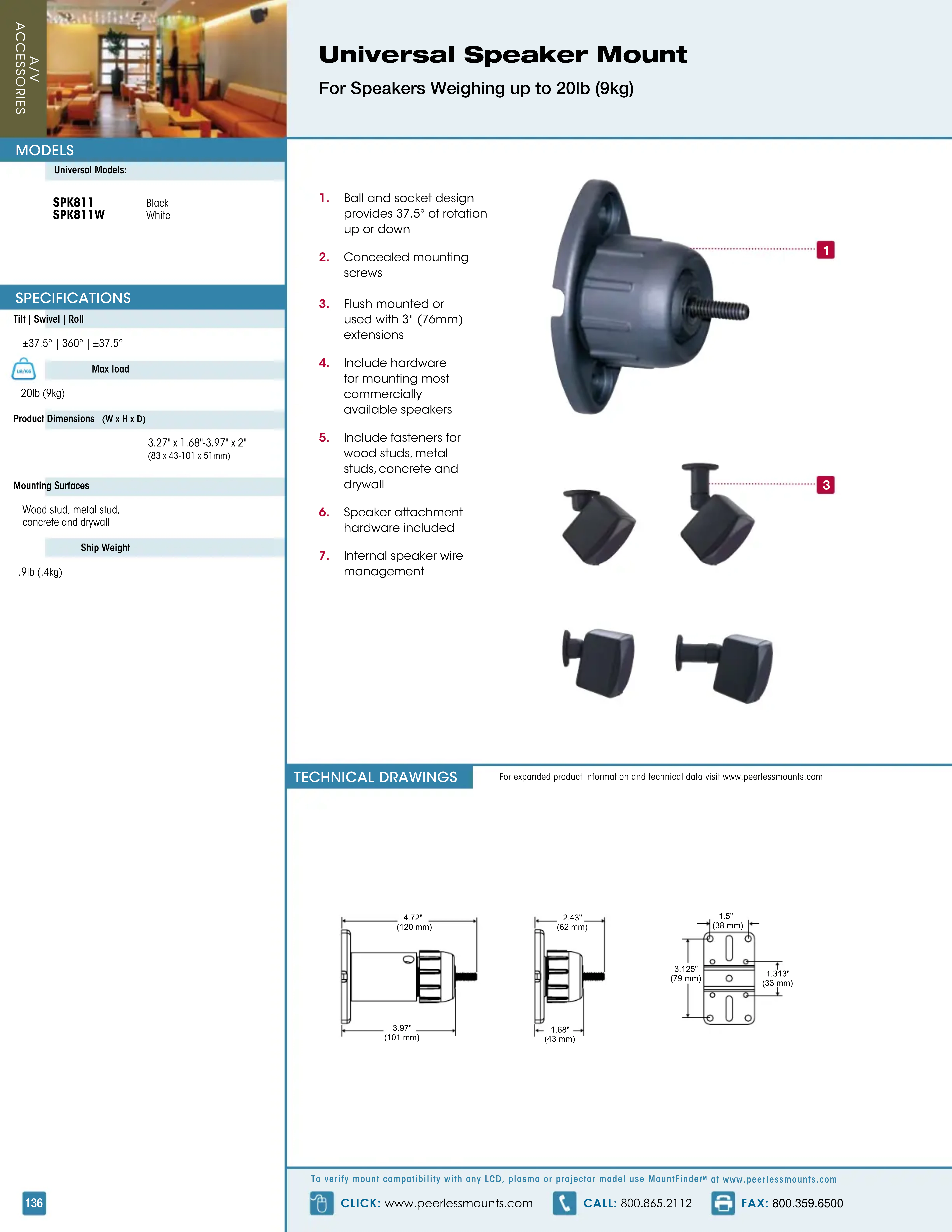 Retrouvez gratuitement la notice de l'appareil SPK811 Peerless-AV au format PDF.