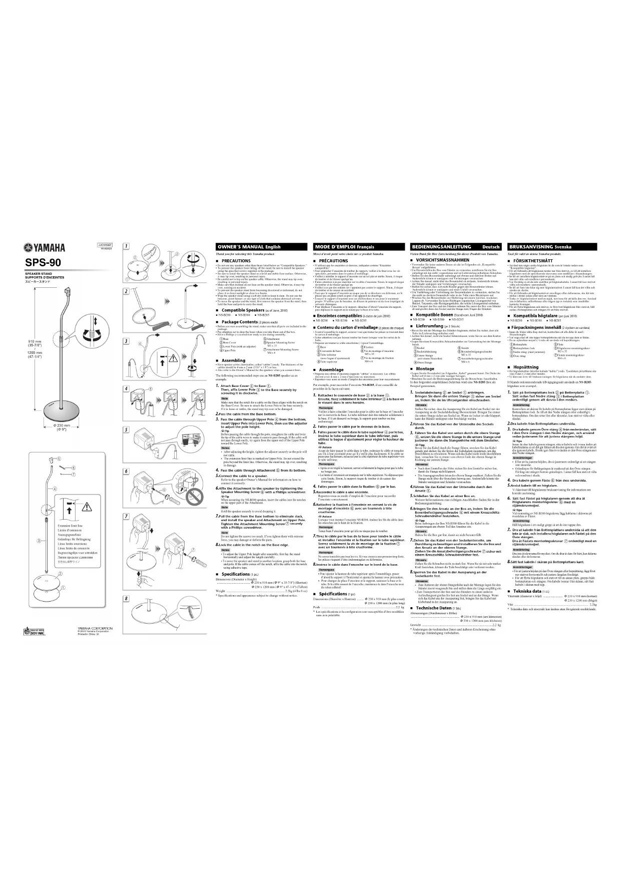 SPS90 - Support des enceintes YAMAHA - Notice d'utilisation et mode d'emploi gratuit