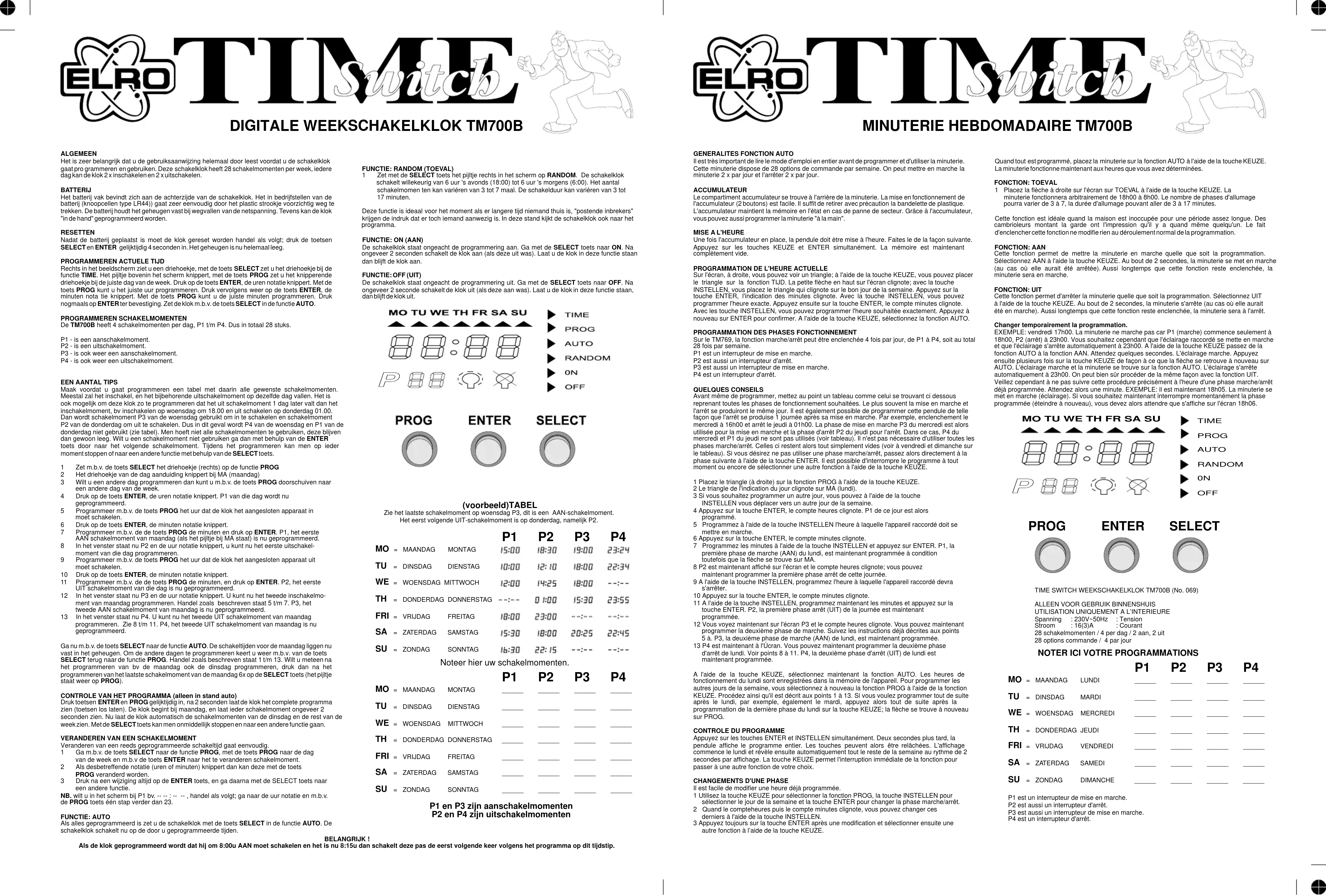 MODE D'EMPLOI TM700B ELRO