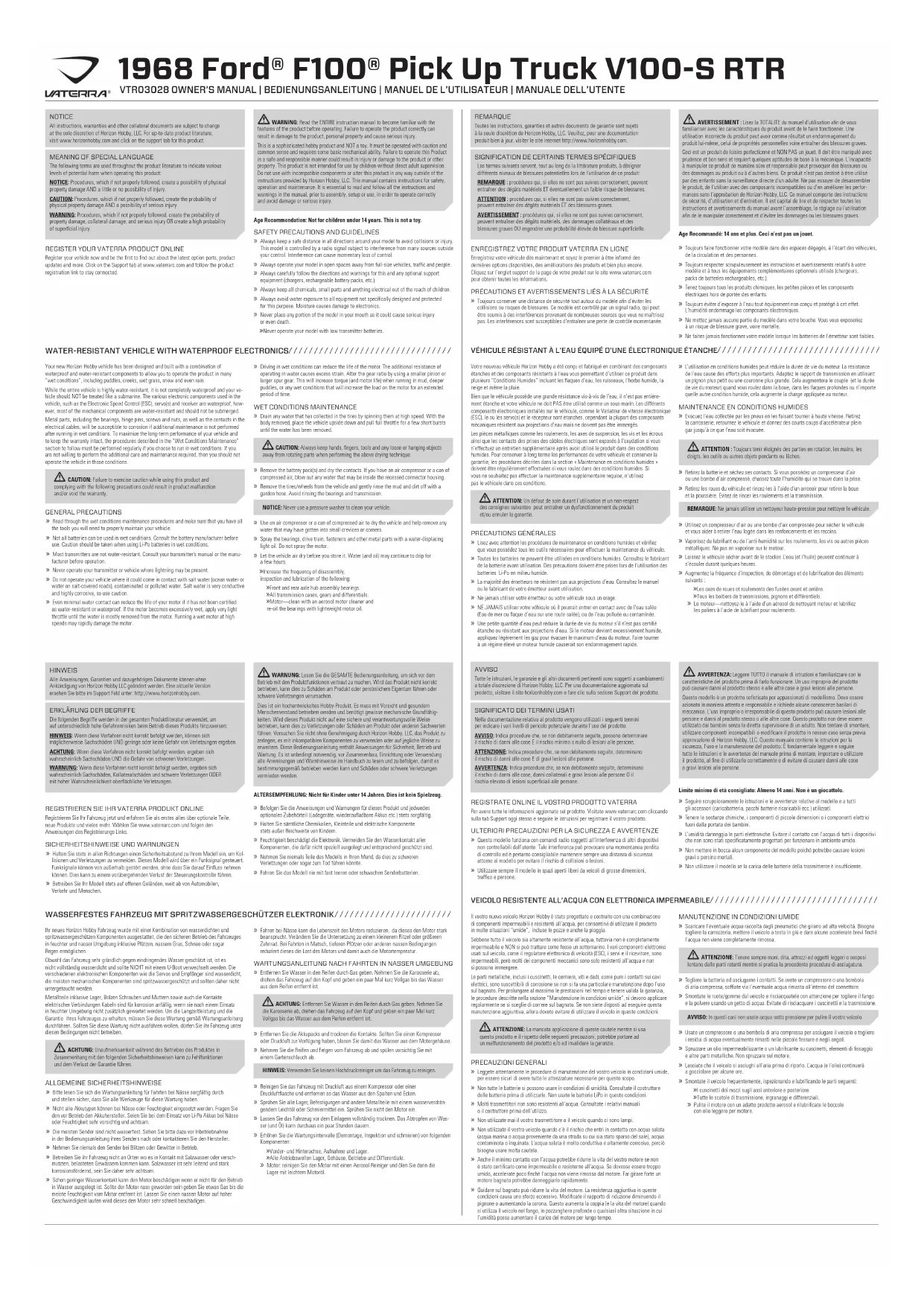 1968 Ford F100 110 - Jouet radiocommandé Vaterra - Notice d'utilisation et mode d'emploi gratuit