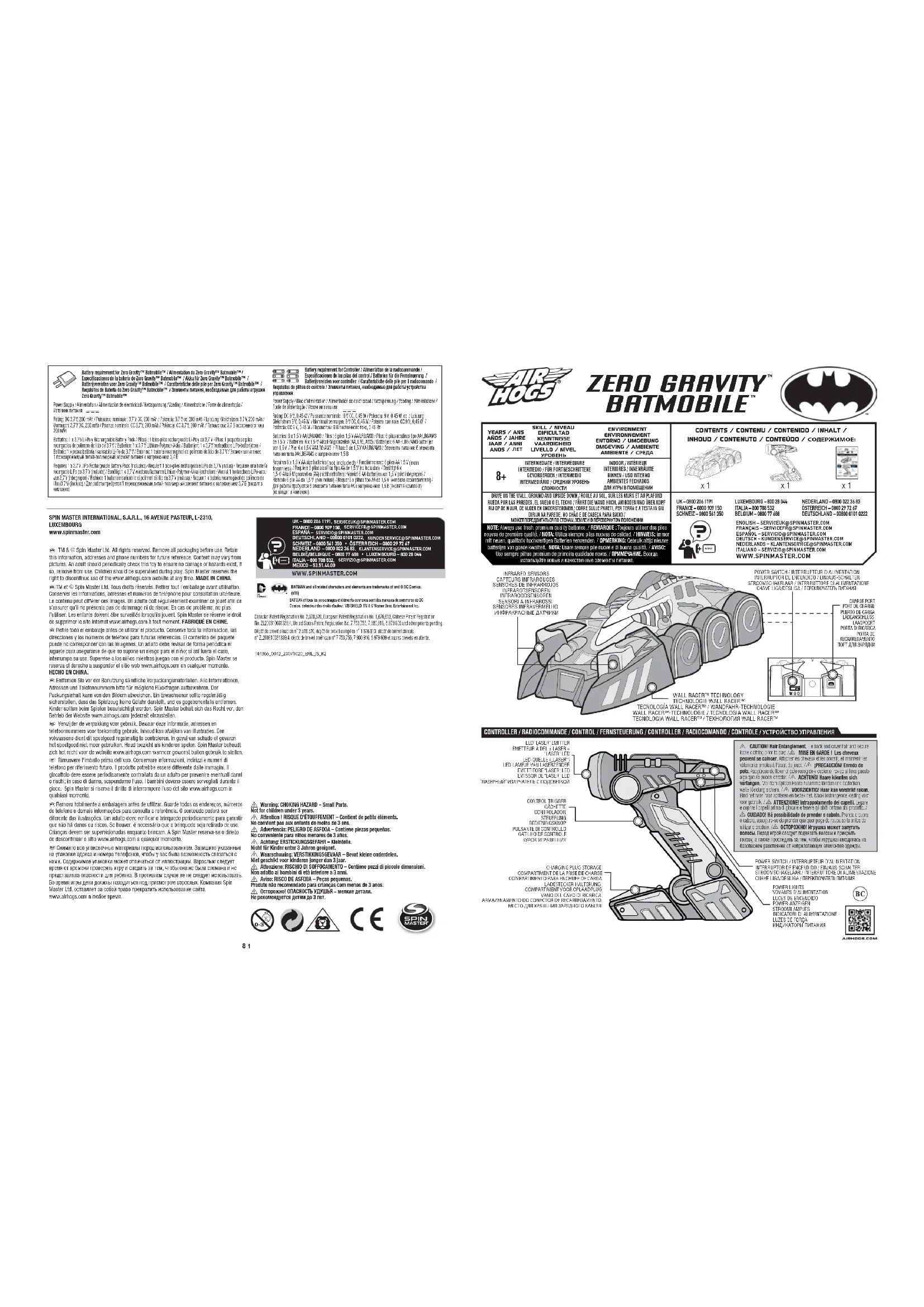 Retrouvez gratuitement la notice de l'appareil Zero Gravity Batmobile Spin Master au format PDF.