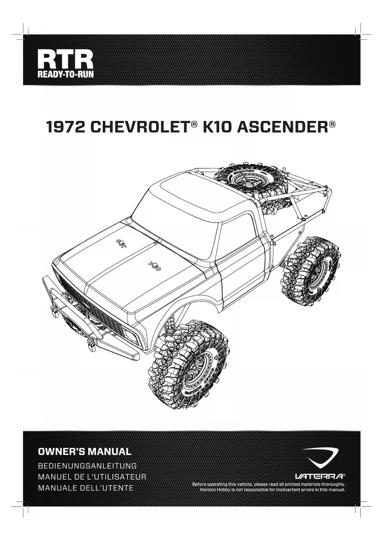 Retrouvez gratuitement la notice de l'appareil 1972 Chevrolet K10 Pickup Ascender Vaterra au format PDF.
