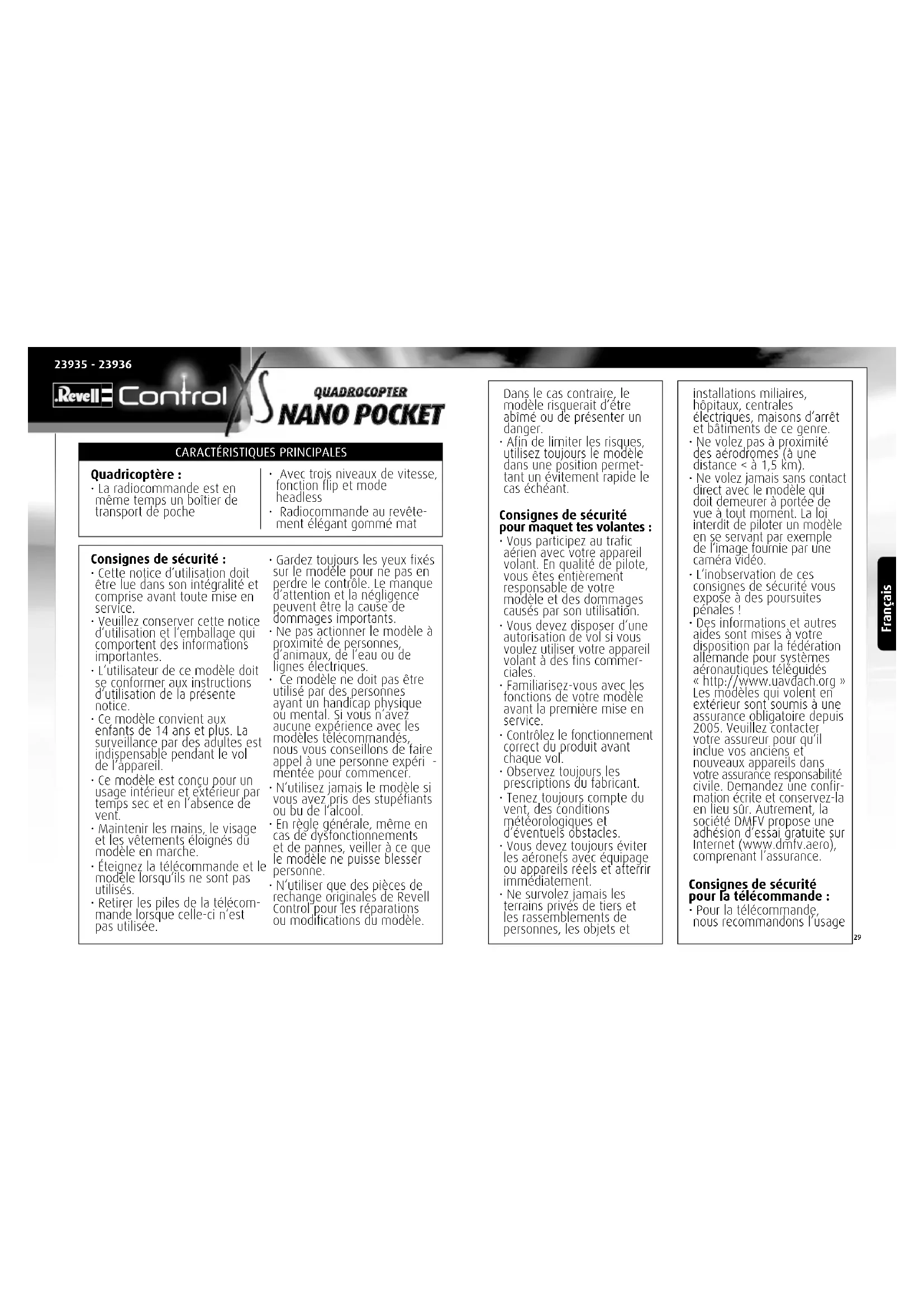 MODE D'EMPLOI Quatcopter Nano Pocket Revell