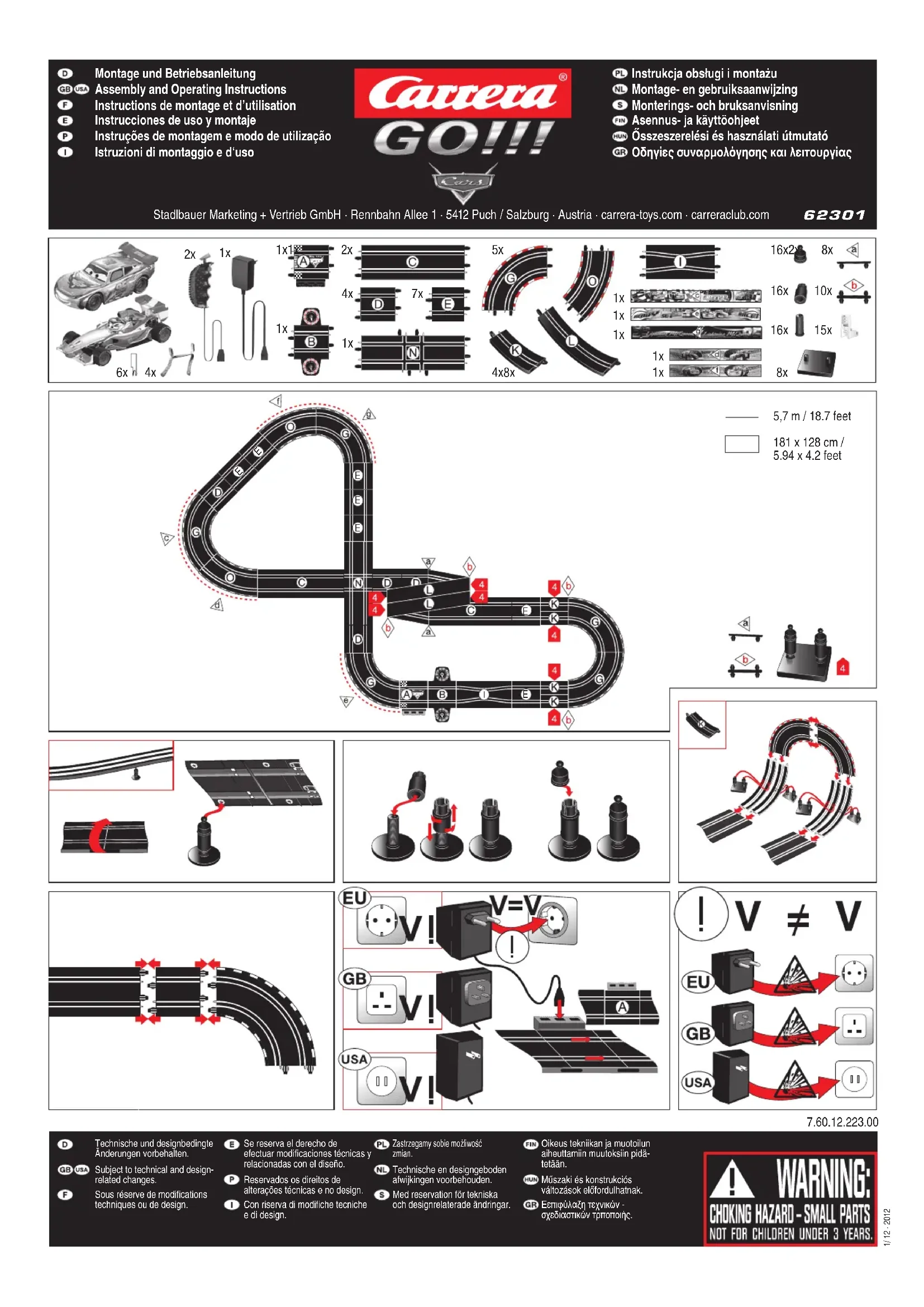 | Dimensions du circuit monté | 181 x 128 cm |