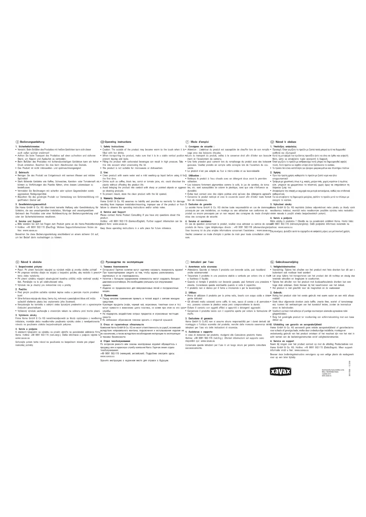 Les boissons fortement pigmentées comme le café, le jus de carottes, de toma- tes, etc. sont susceptibles de colorer le plastique, sans que cela n‘inuence sa durabilité.