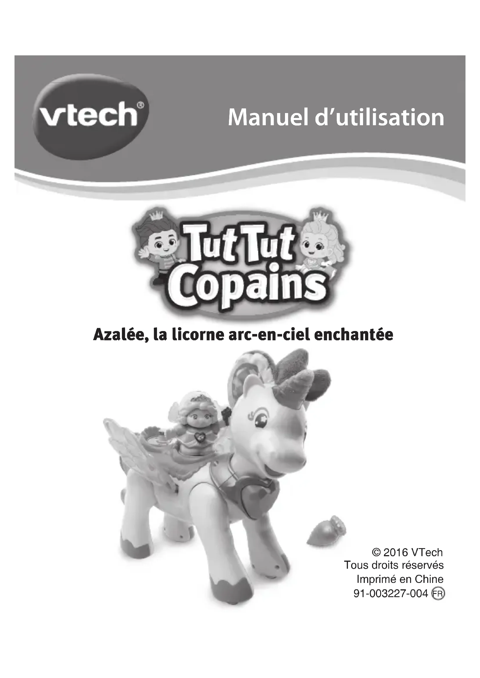 Manuel d’utilisation Azalée, la licorne arc-en-ciel enchantée © 2016 VTech Tous droits réservés Imprimé en Chine 91-003227-004 FRavenir. C’est pourquoi tous nos jeux sont conçus de manière à les inciter à découvrir le monde qui les entoure.2 INTRODUCTION Vous venez d’acquérir Azalée, la licorne arc-en-ciel enchantée de VTech