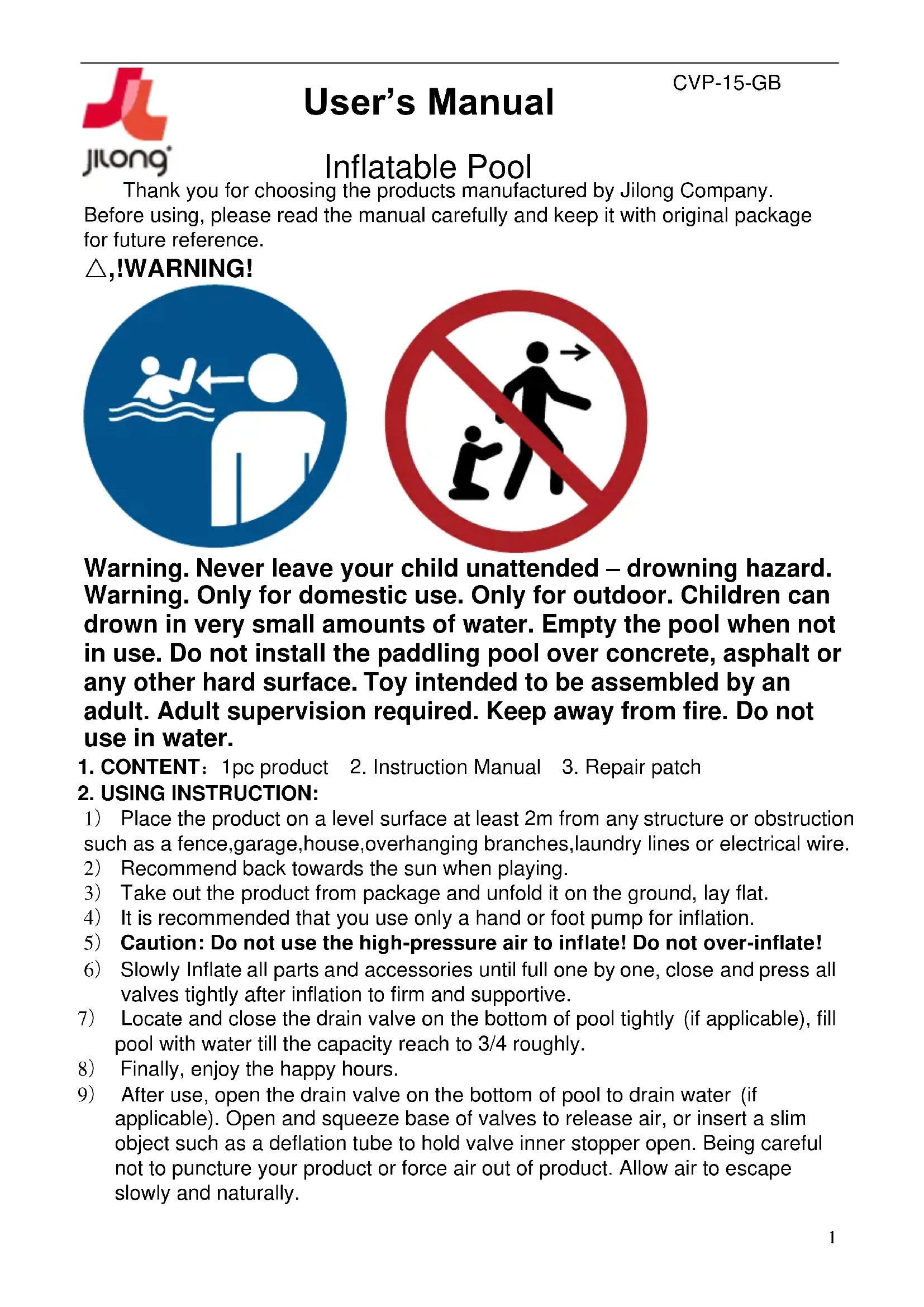 Merci d'avoir choisi parmi les produits fabriqués par Jilong Company. Avant utilisation, veuilles dire le manuel attentivement et le conserver avec l'emballage d'origine pour reference future.
