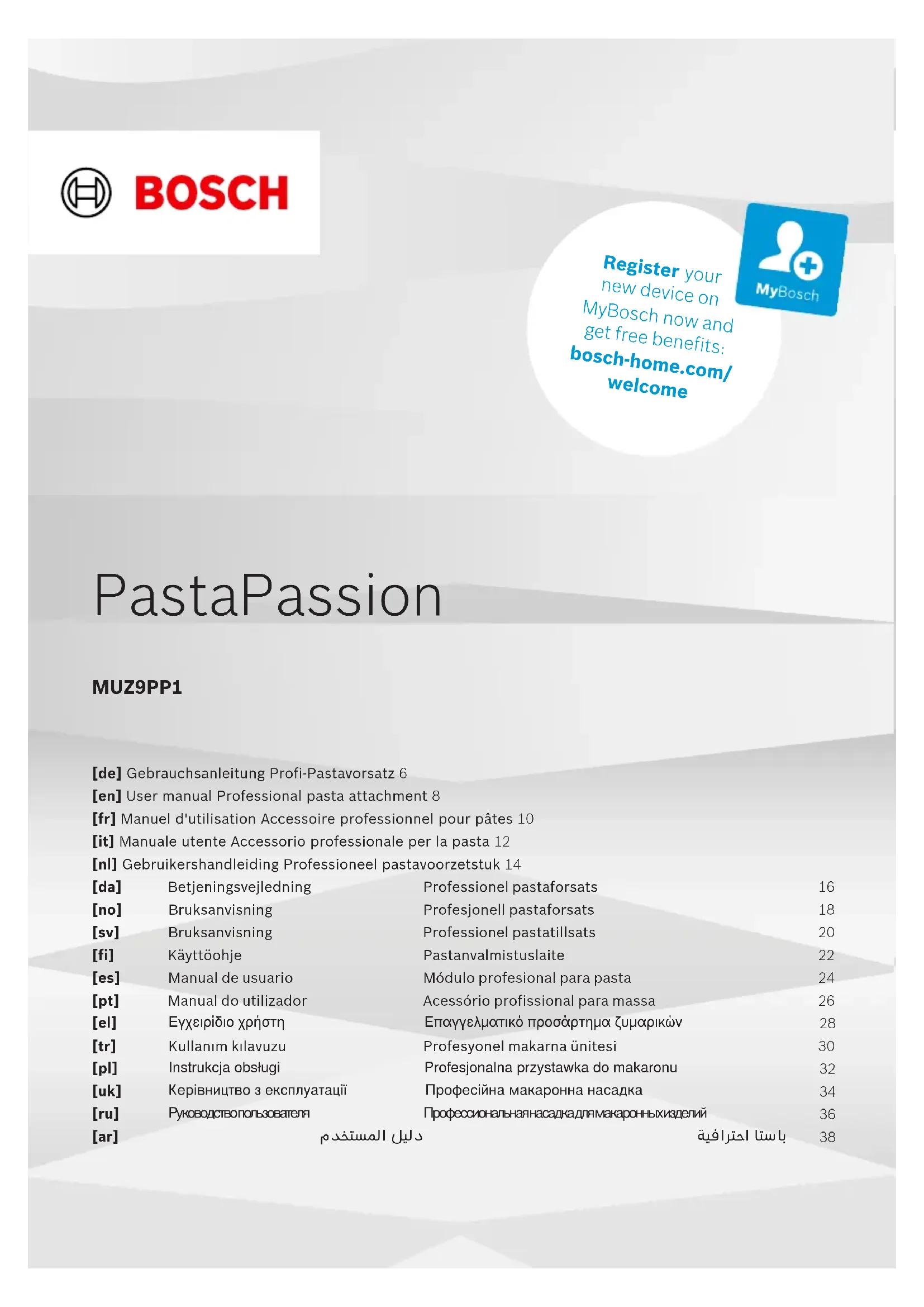 Retrouvez gratuitement la notice de l'appareil MUZ9PP1 BOSCH au format PDF.
