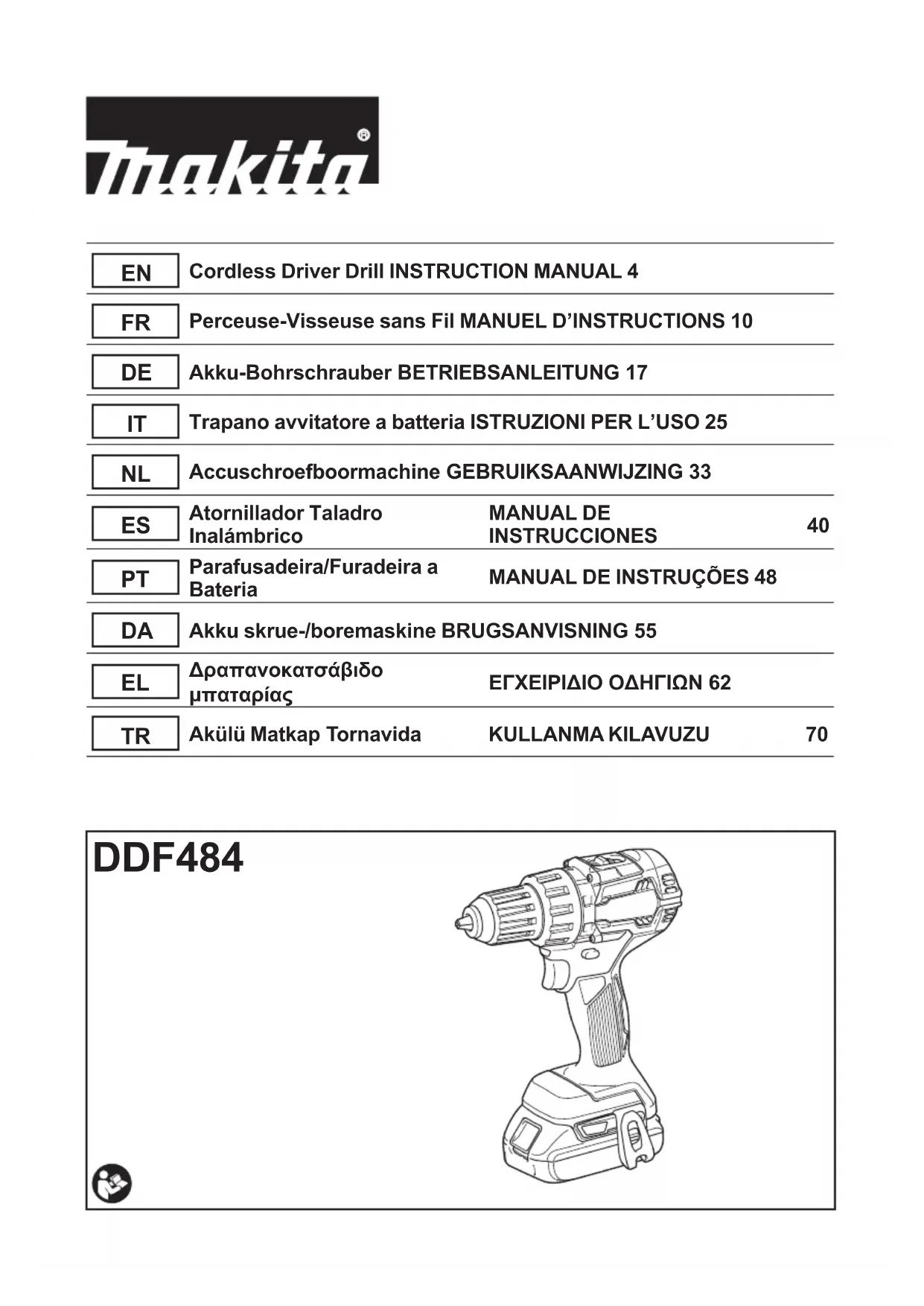 Retrouvez gratuitement la notice de l'appareil DDF484 MAKITA au format PDF.