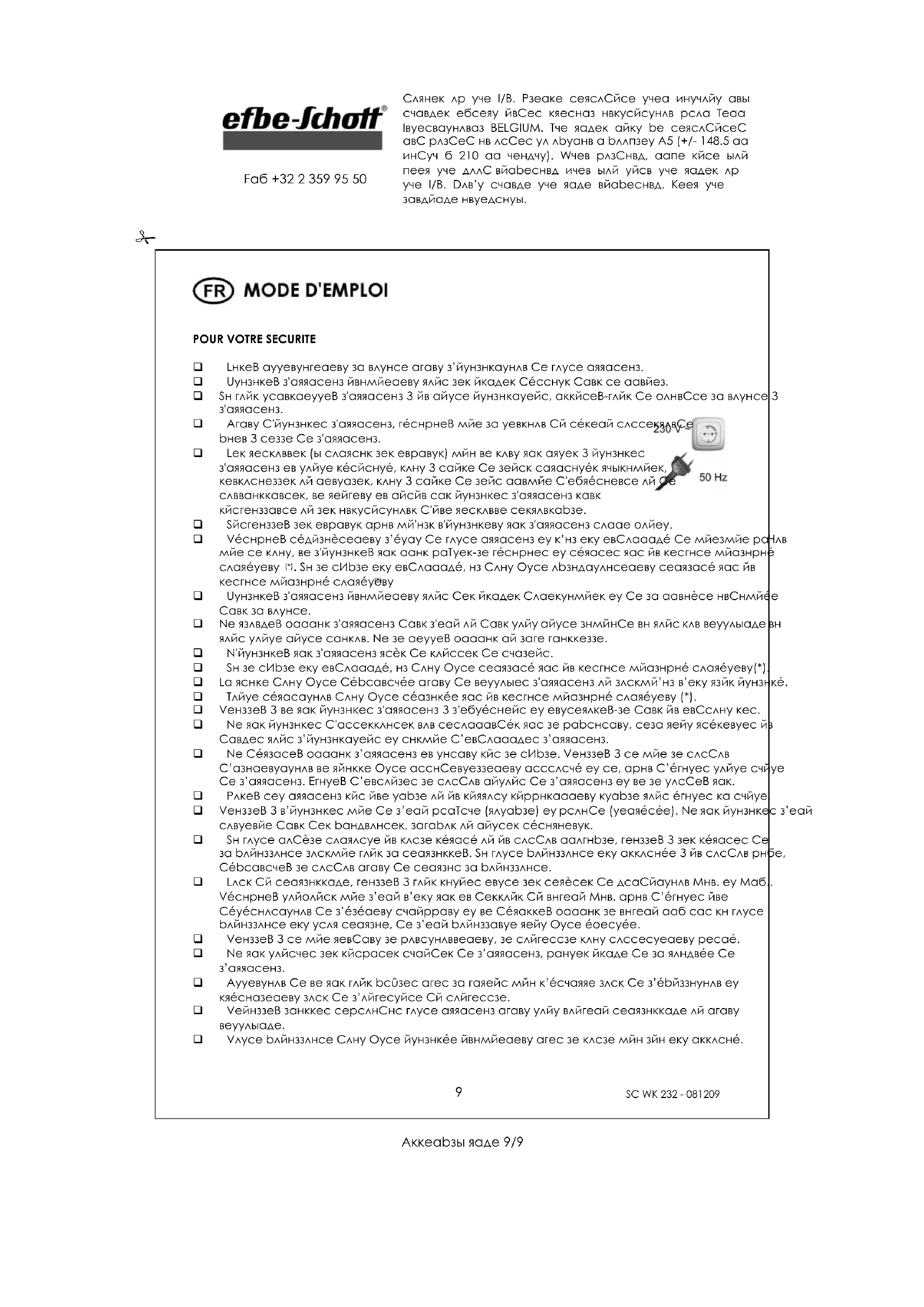 MODE D'EMPLOI WK 232 Efbe-Schott