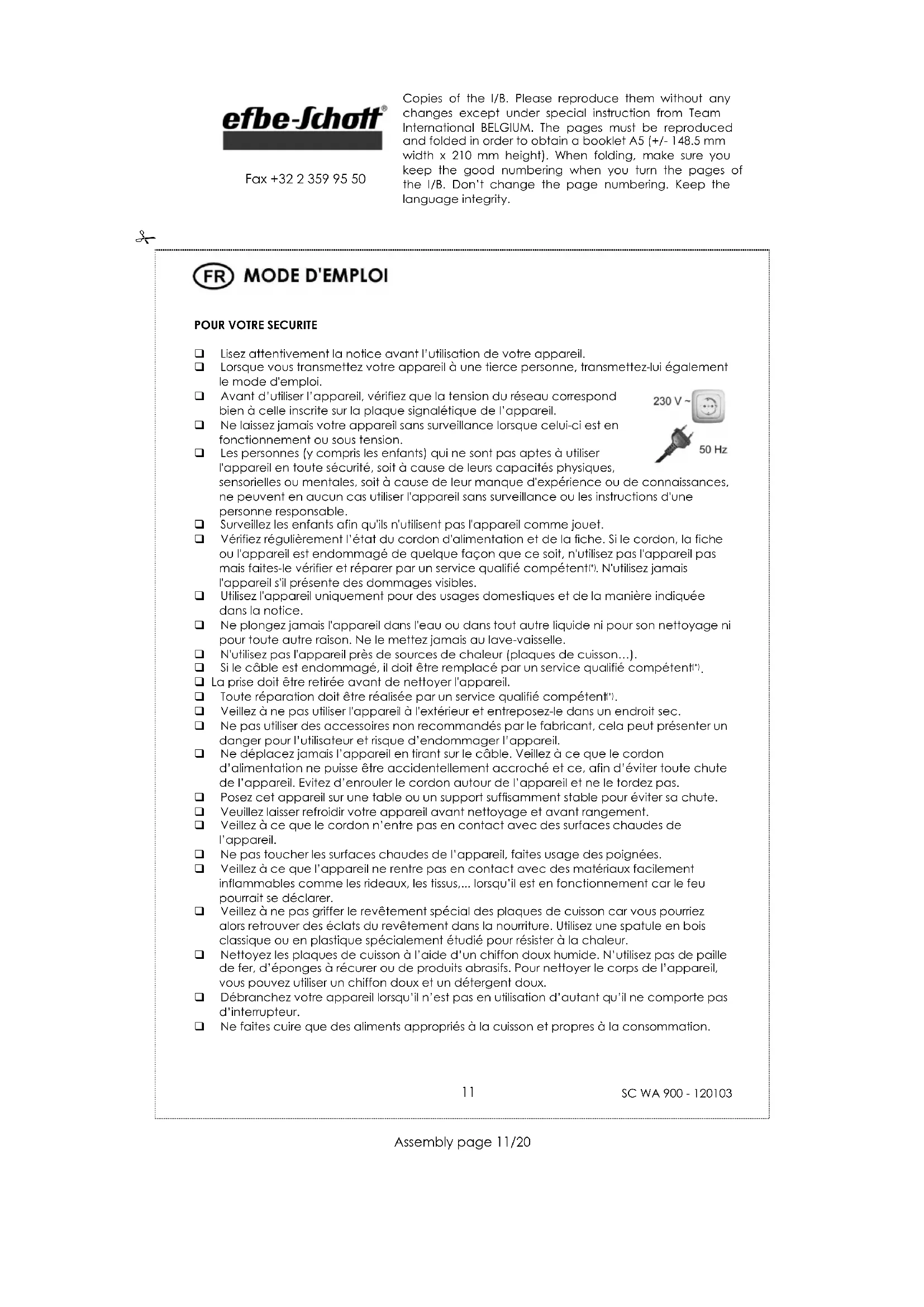 MODE D'EMPLOI WA 900 Efbe-Schott