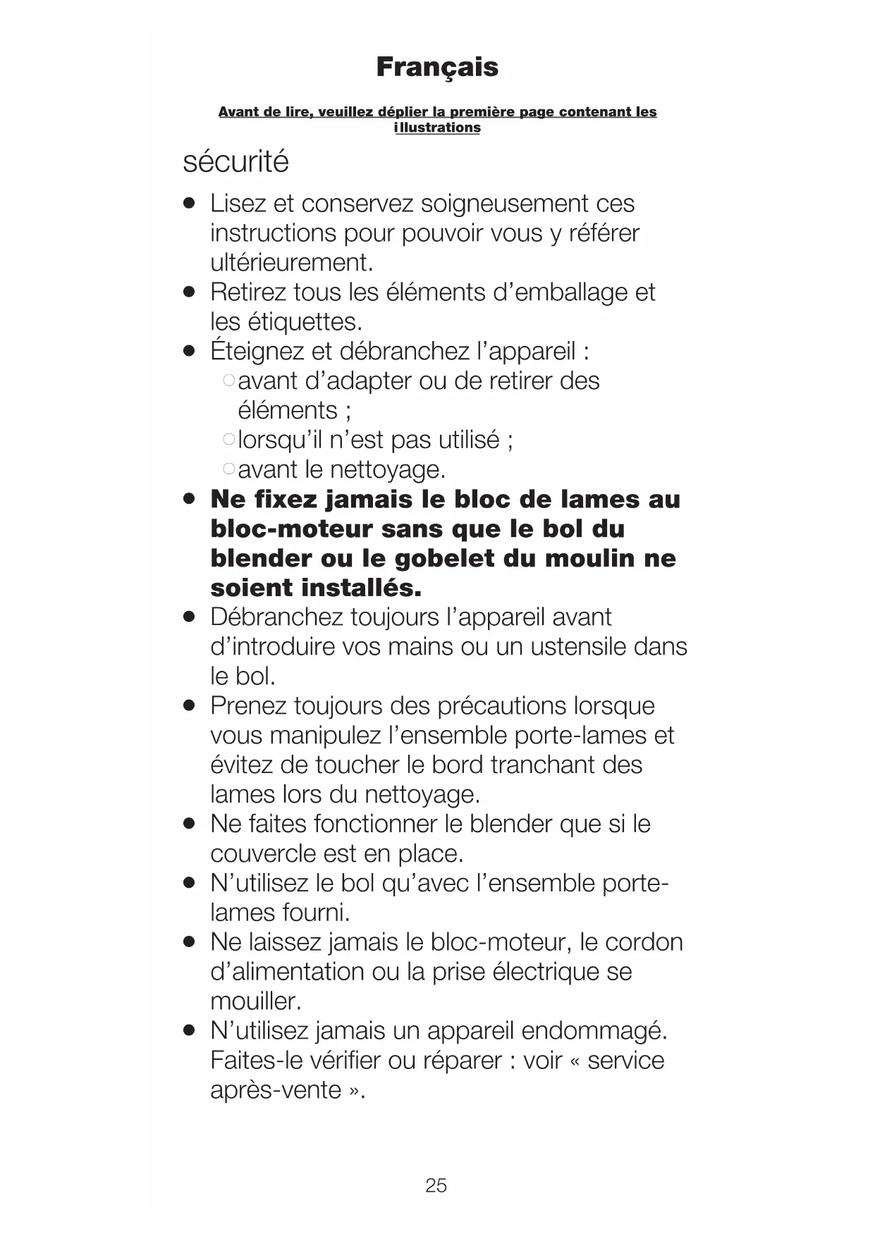 Une mauvaise utilisation de votre blender peut provoquer des blessures.