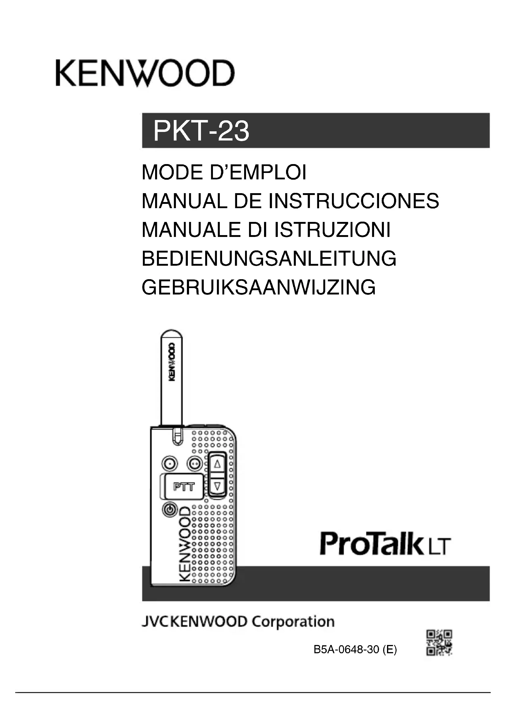 Téléchargez la notice de votre Talkie-walkie au format PDF gratuitement ! Retrouvez votre notice PKT23 - KENWOOD et reprennez votre appareil électronique en main. Sur cette page sont publiés tous les documents nécessaires à l'utilisation de votre appareil PKT23 de la marque KENWOOD.