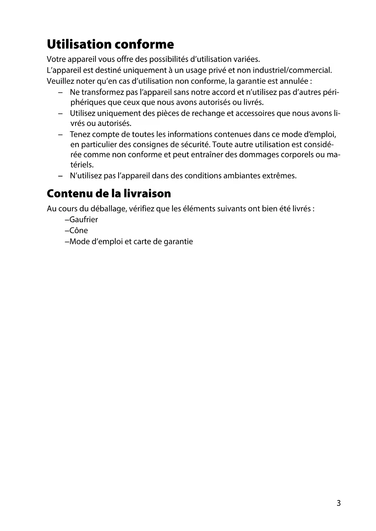 Veuillez noter qu'en cas d'utilisation non conforme, la garantie est annulée :