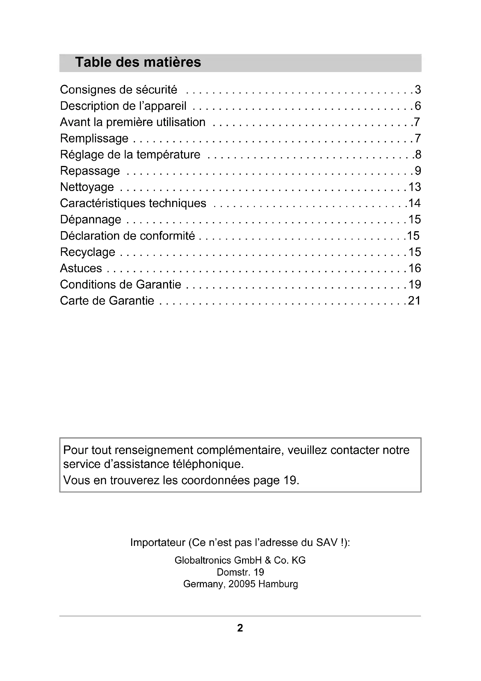 Dans le cas d'une réclamation veuillez contacter notre hotline SAV au préalable par téléphone, qui vous renseignera sur les modalités. S'il vous plaît, n'envoyez pas votre article sans appel préalable !