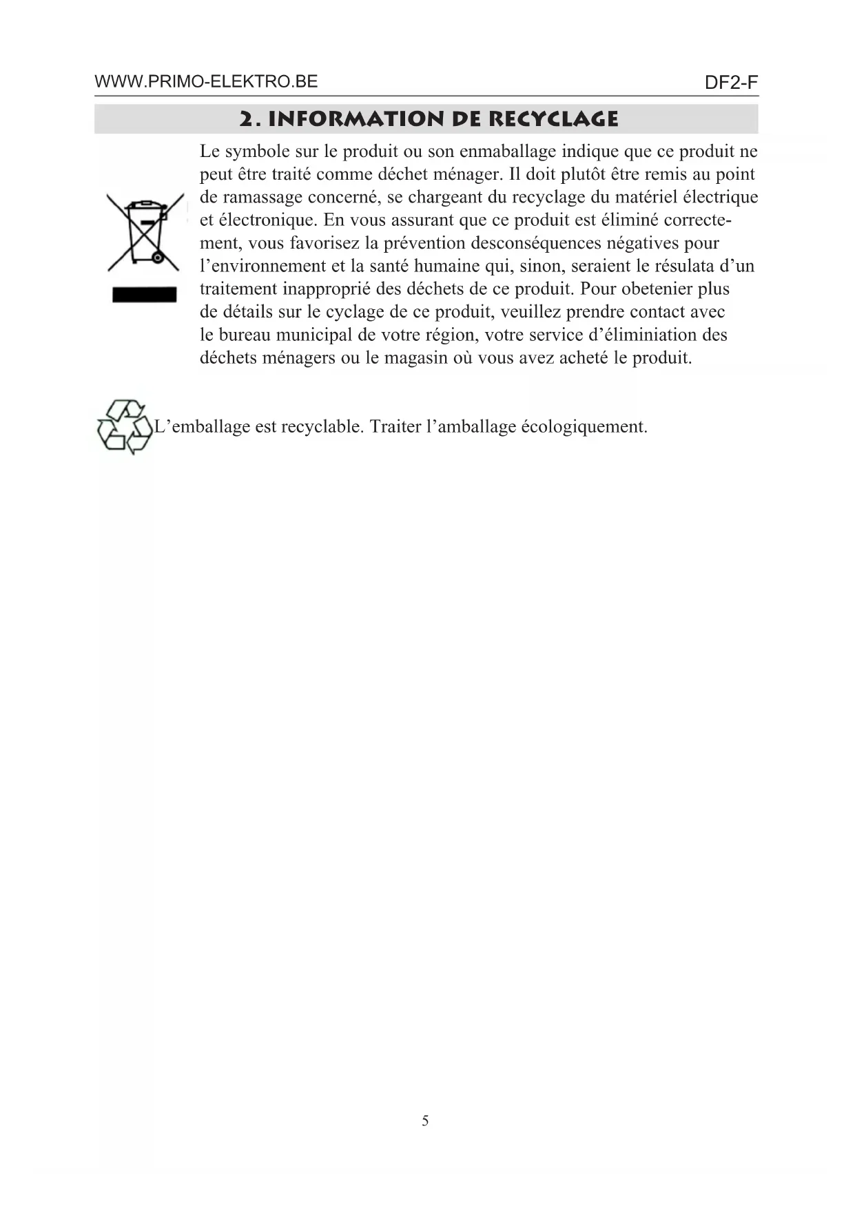 | 2. INFORMATION DE RECYCLAGE 5 | |