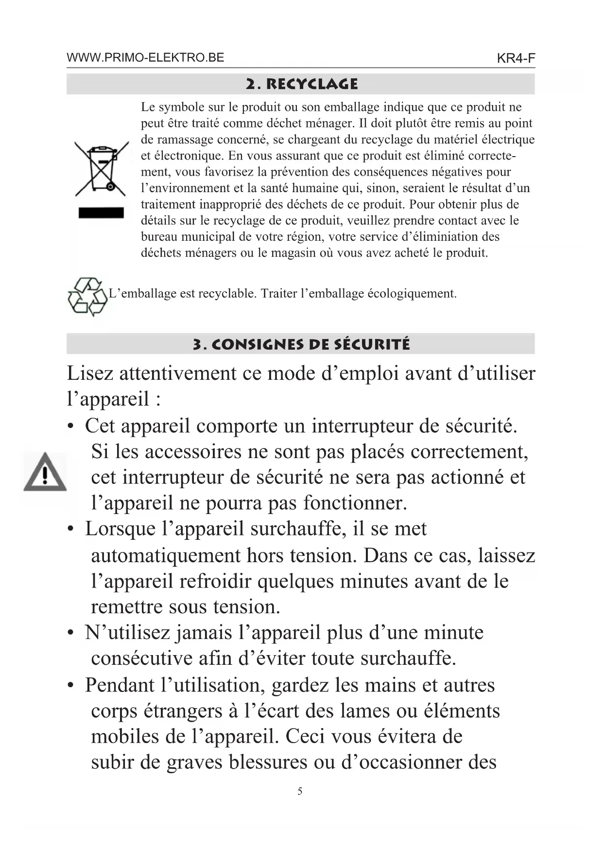 3. CONSIGNES DE SÉCURITÉ