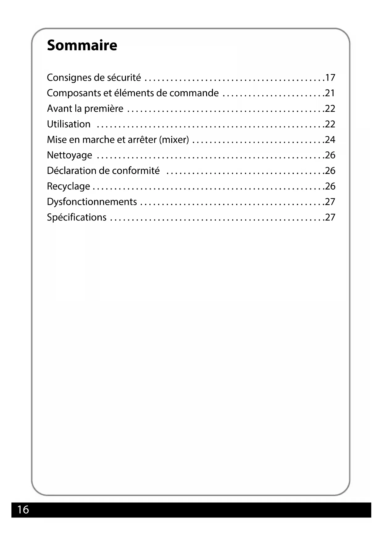 Mise en marche et arrêt (mixer) 24