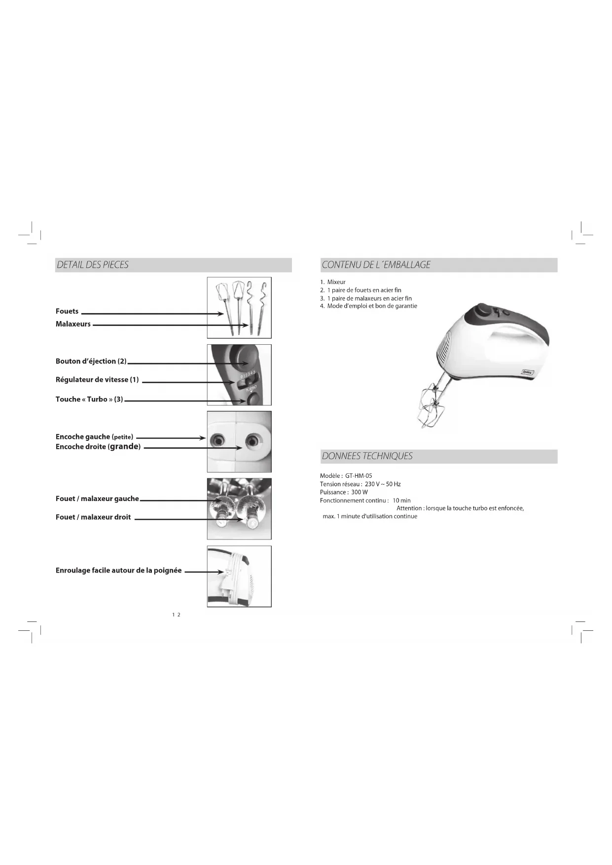 Remarque! il existe un fouet / un malaxeur gauche et un fouet / malaxer droit.