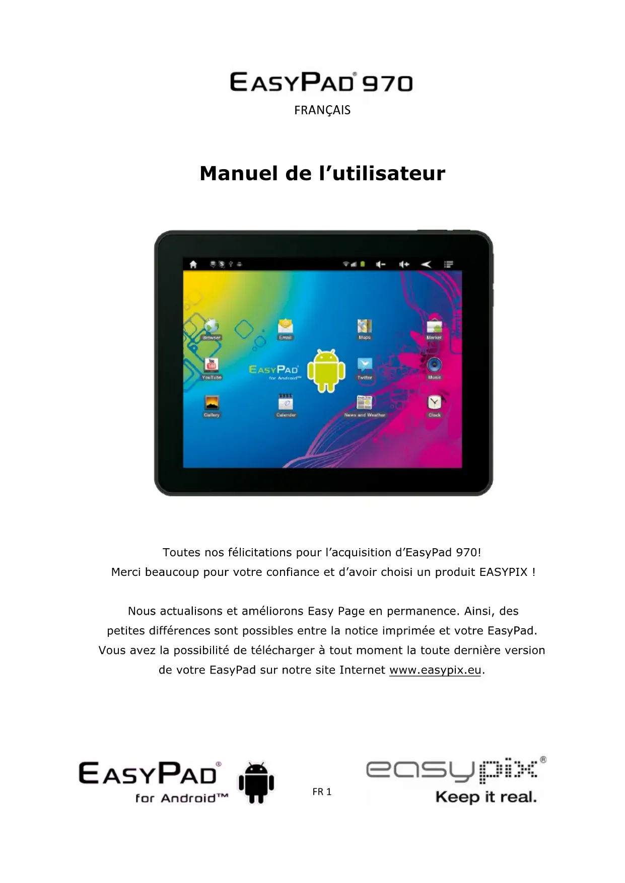 Toutes nos félicitations pour l'acquisition d'EasyPad 970! Merci beaucoup pour votre confiance et d'avoir besoin un produit EASYPIX !