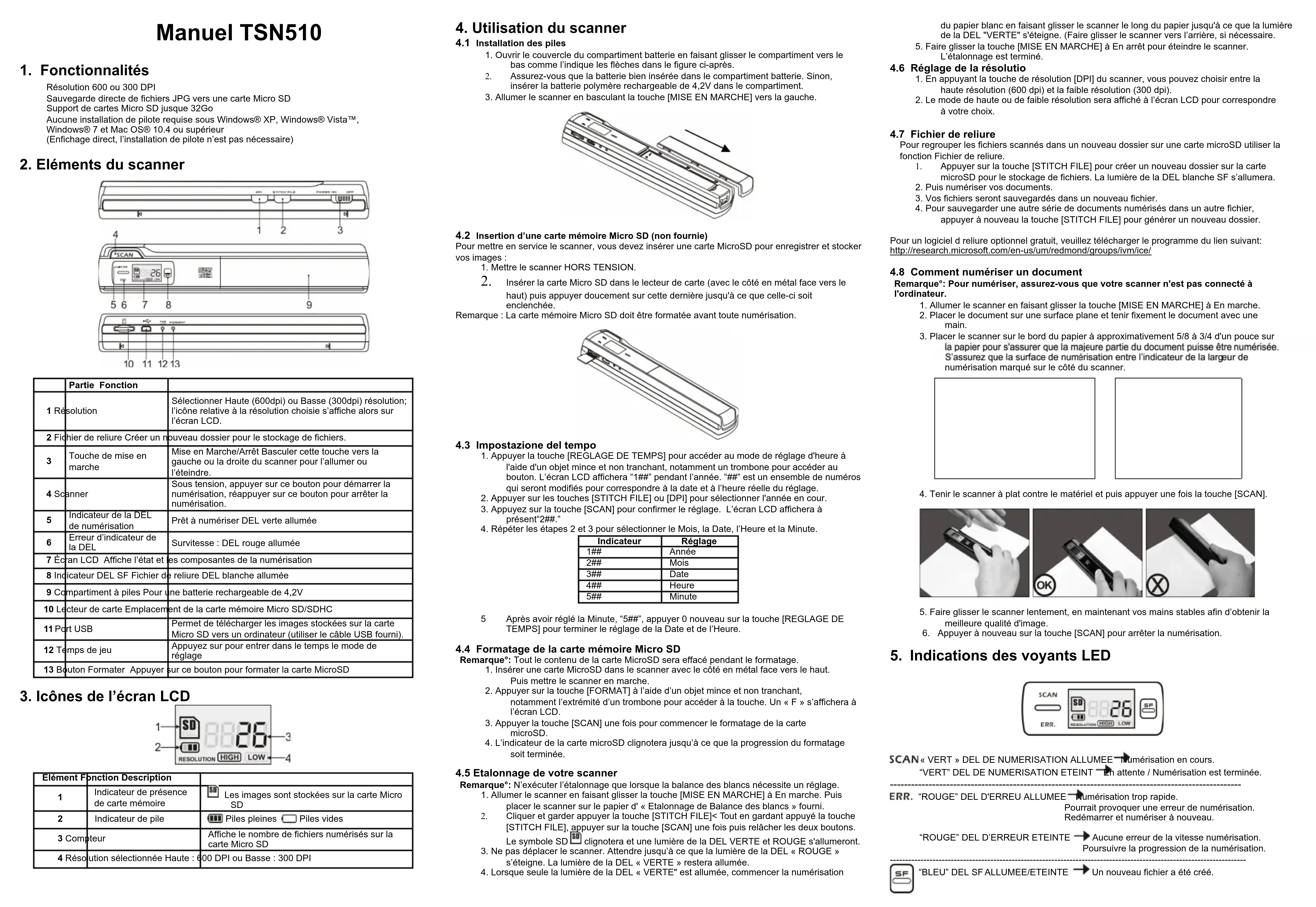Pourmettre en service le scanner, you'veeinserinera carte MicroSD pour enregister et stocker yousignes: