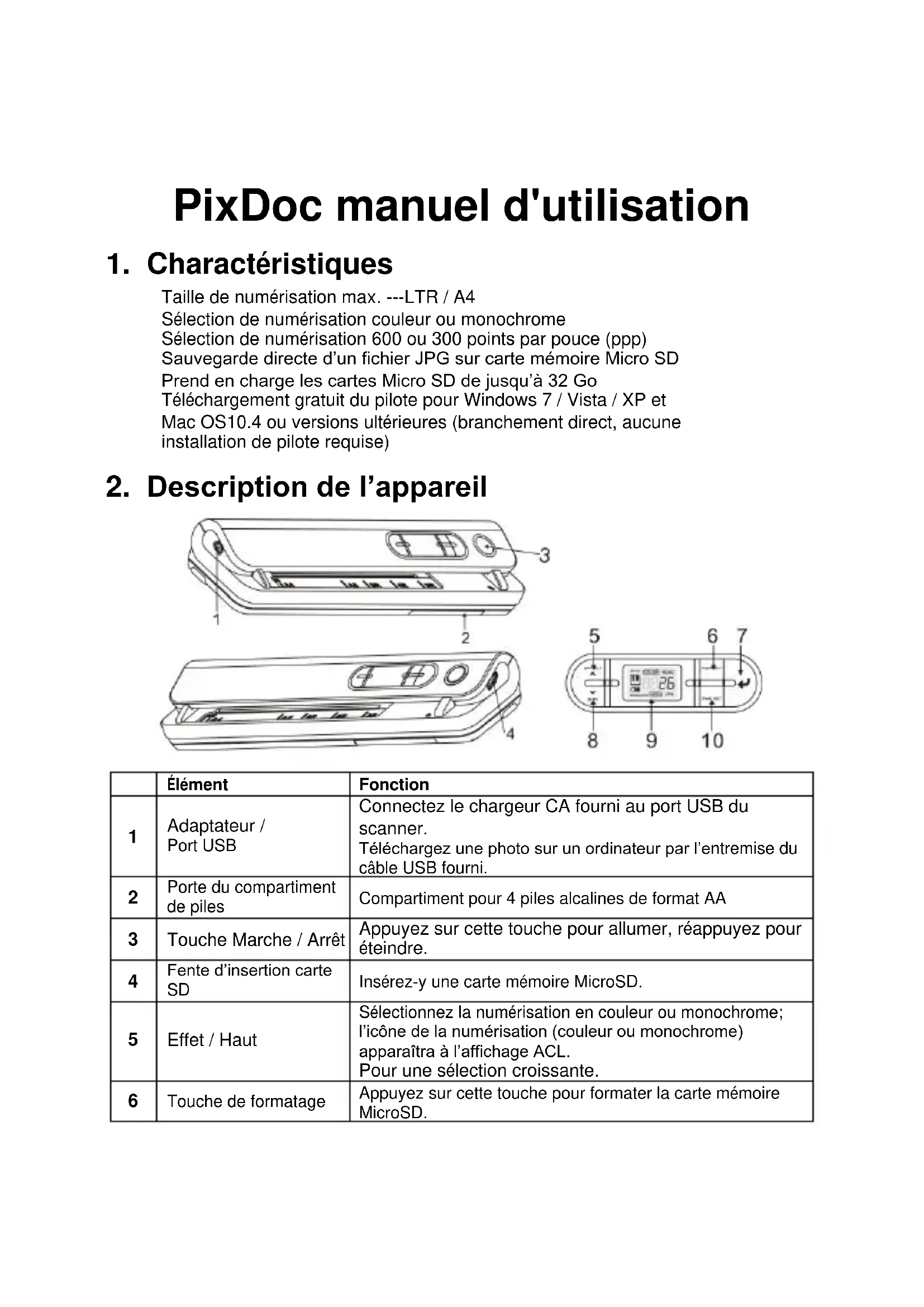 PixDoc - Scanner EASYPIX - Notice d'utilisation et mode d'emploi gratuit