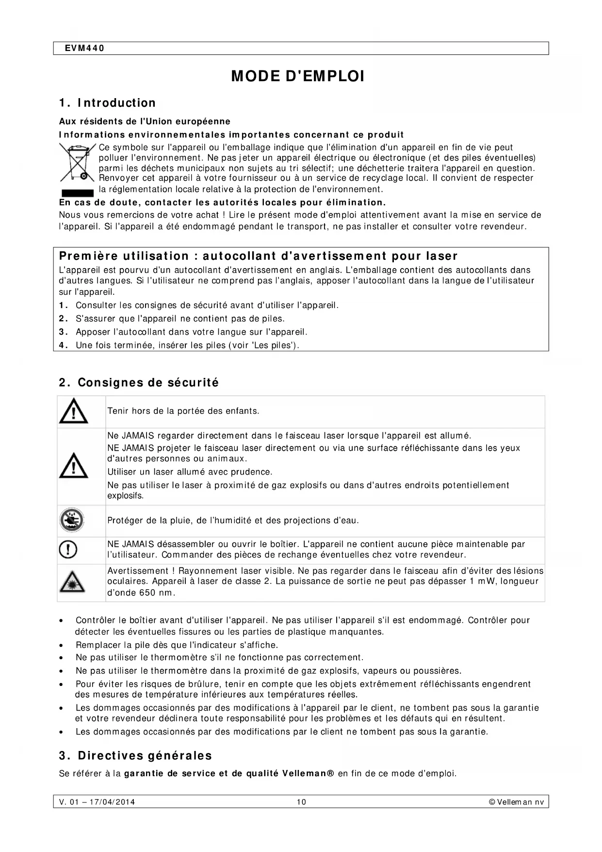 Se référer à la garantie de service et de qualité Velleman® en fin de ce mode d'emploi.