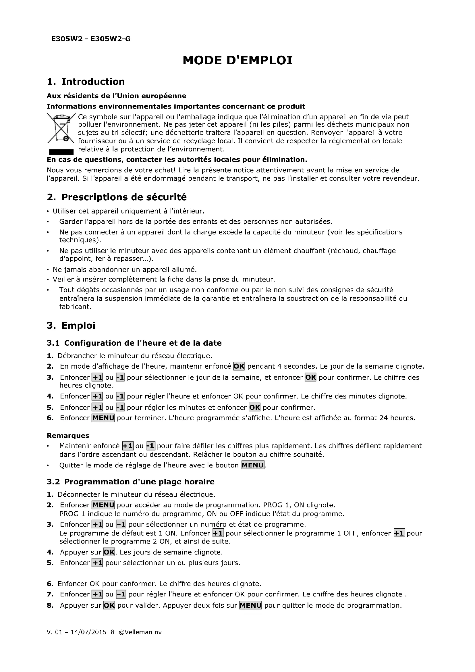MODE D'EMPLOI E305W2G Perel
