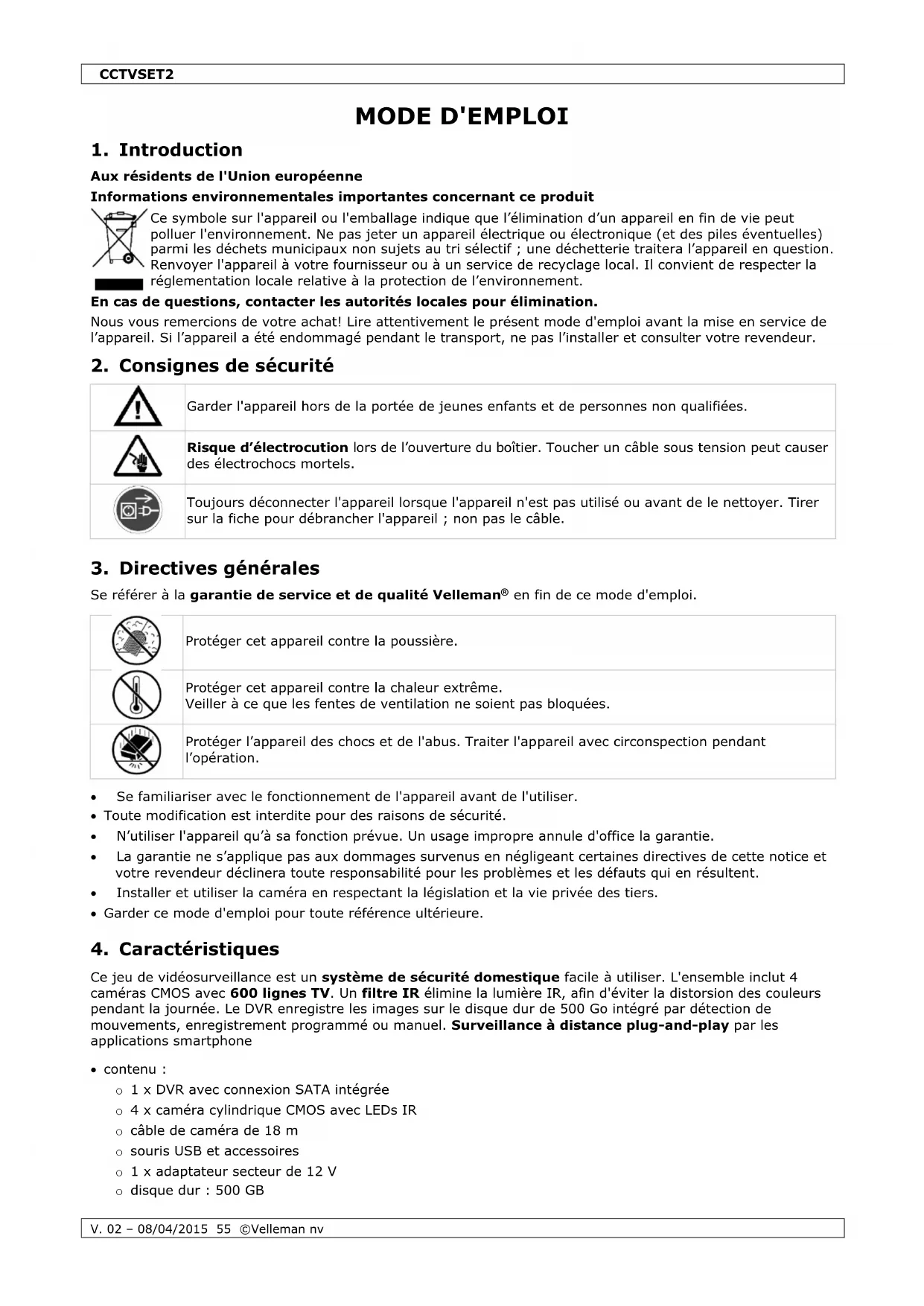 Se référer à la garantie de service et de qualité Velleman® en fin de ce mode d'emploi.