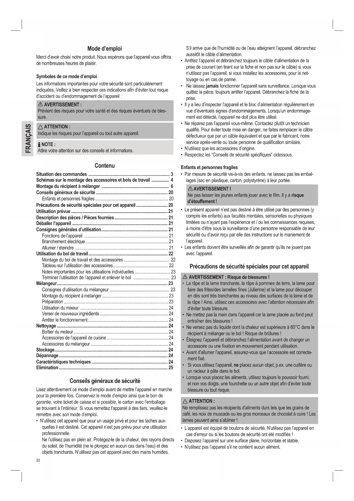 - Consignes d’utilisation du mélangeur p. 23