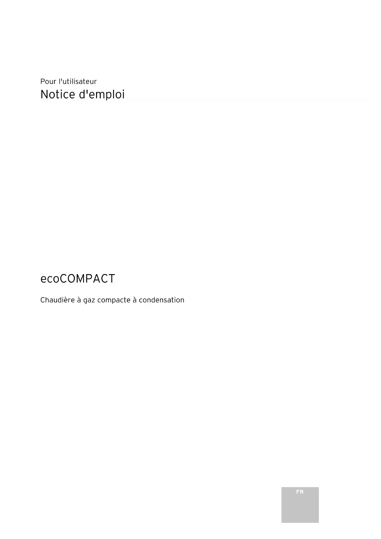 ecoCOMPACTPour l'utilisateur Notice d'emploi ecoCOMPACT Chaudière à gaz compacte à condensation FR2 Notice d'emploi ecoCOMPACT 0020040939_02 Table des matières 1 Remarques relatives à la documentation ........3
