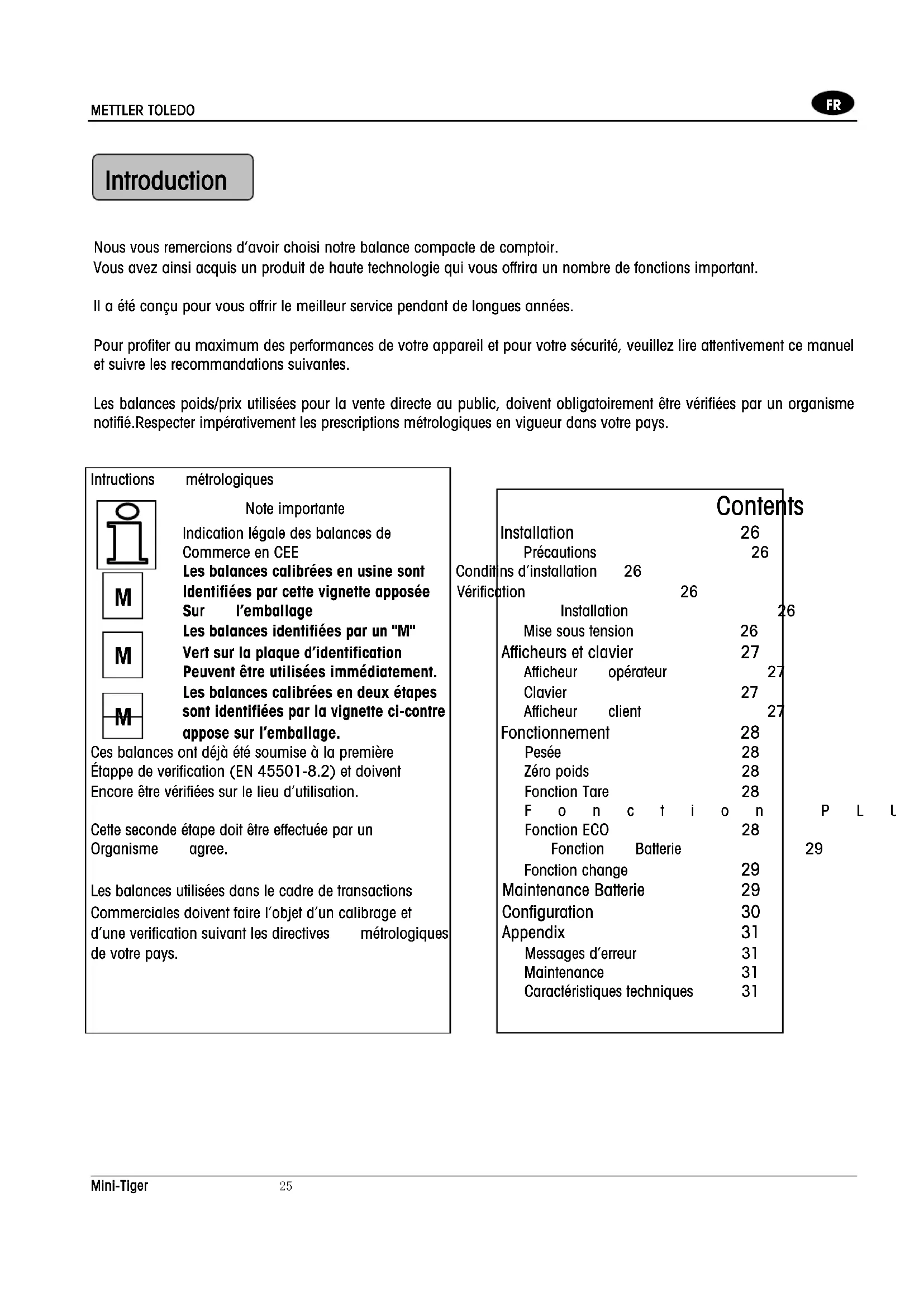 MiniTiger - Balance Mettler Toledo - Notice d'utilisation et mode d'emploi gratuit
