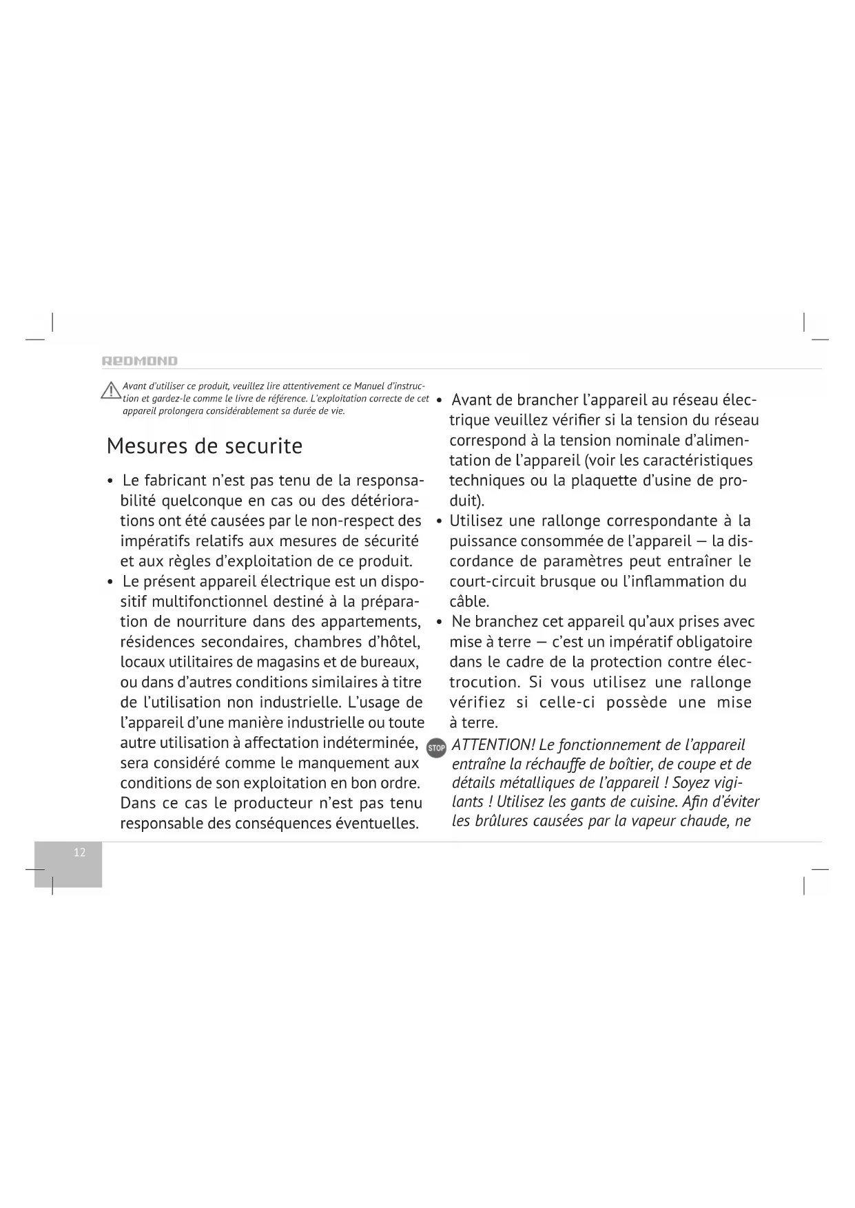 Retrouvez gratuitement la notice de l'appareil RMCM800SE Redmond au format PDF.