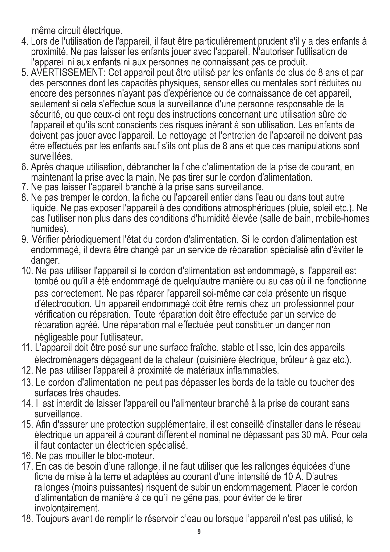 4. Lors de l'utilisation de l'appareil, il faut être particulièrement prudent s'il y a des enfants à
