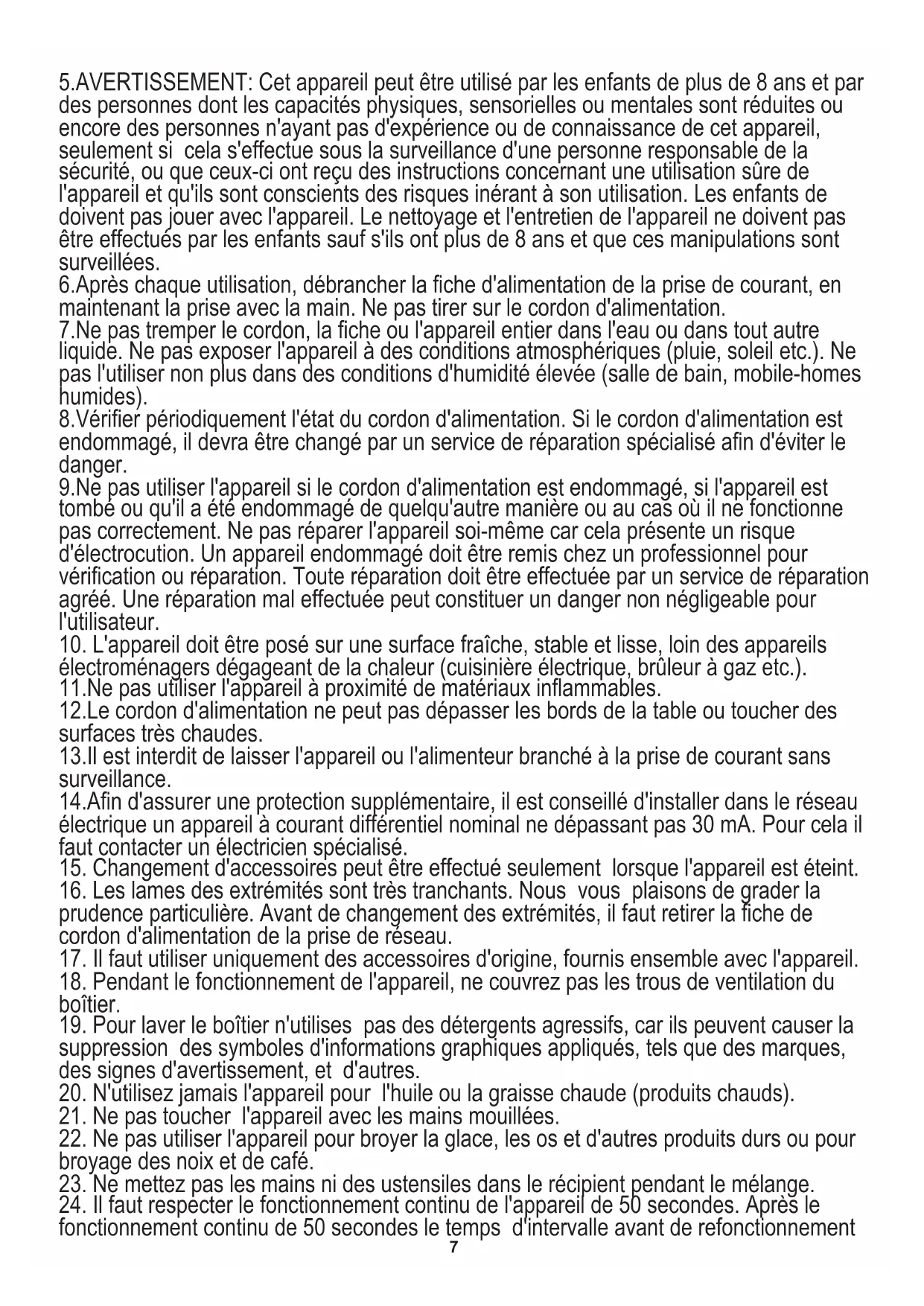23. Ne mettez pas les mains ni des ustensiles dans le récipient pendant le mélange.
