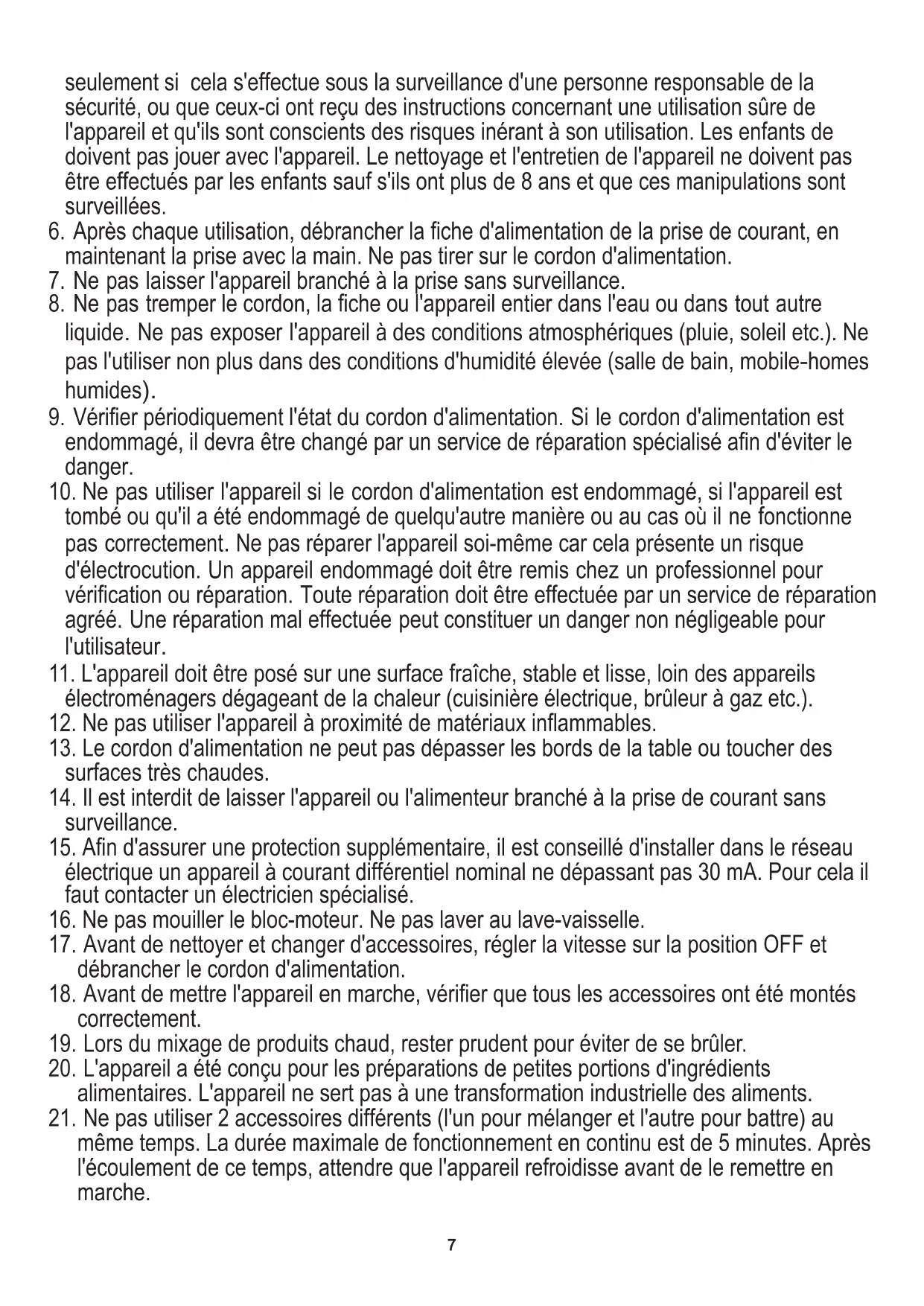 21. Ne pas utiliser 2 accessoires différents (l'un pour mélanger et l'autre pour battre) au