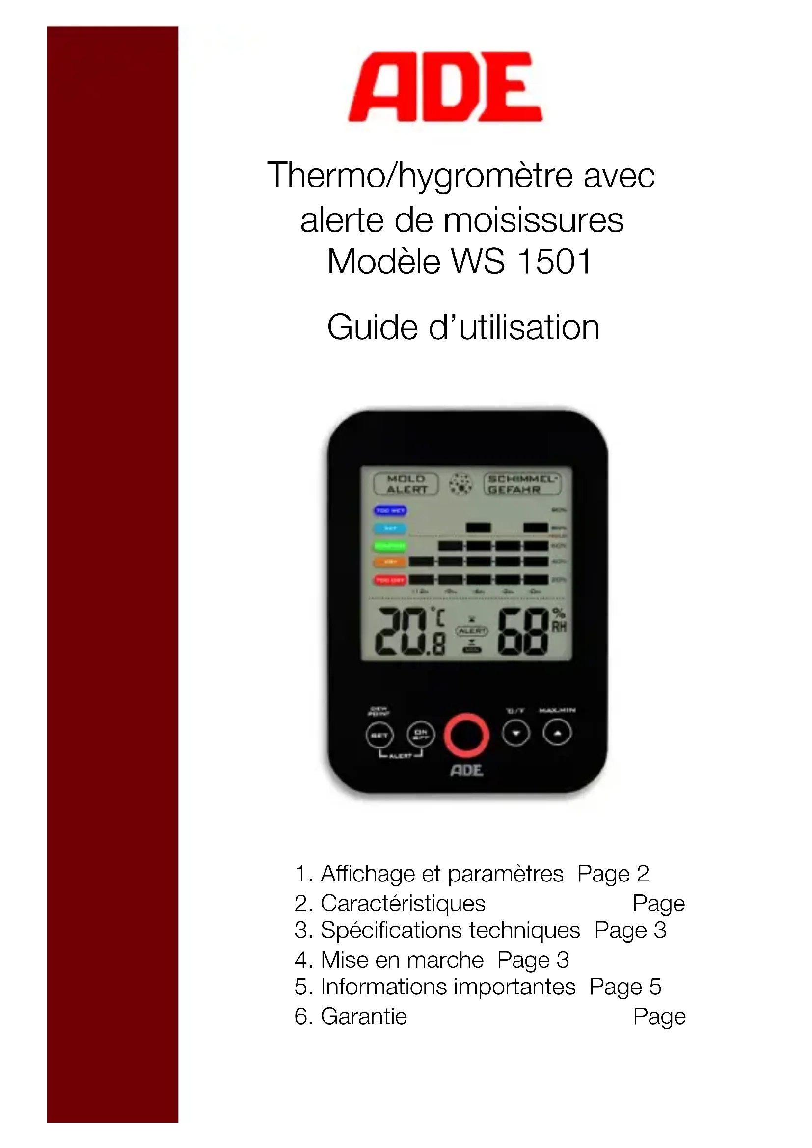 WS 1501 - Station Météo ADE - Notice d'utilisation et mode d'emploi gratuit