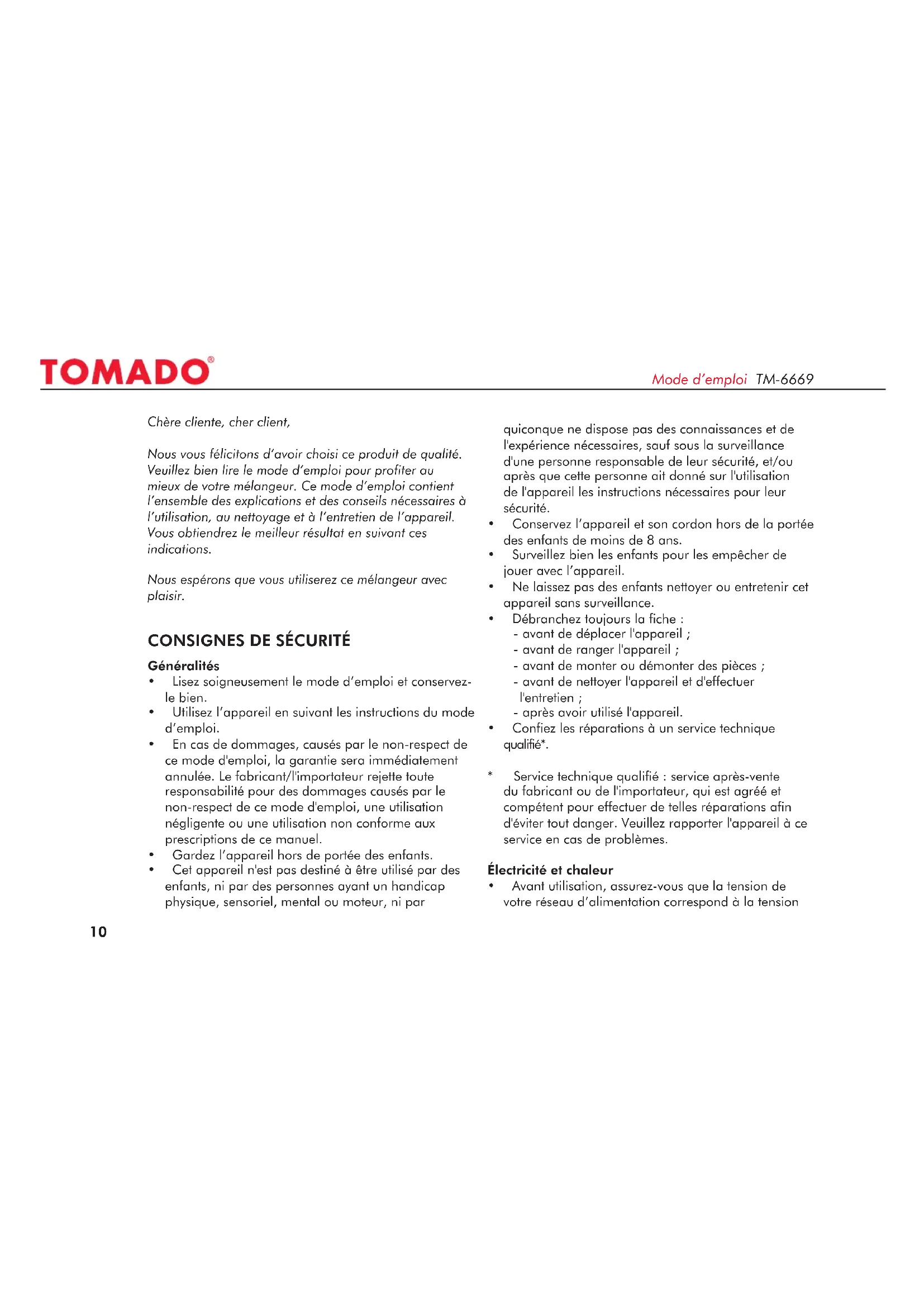 TM6669 - Blender Tomado - Notice d'utilisation et mode d'emploi gratuit