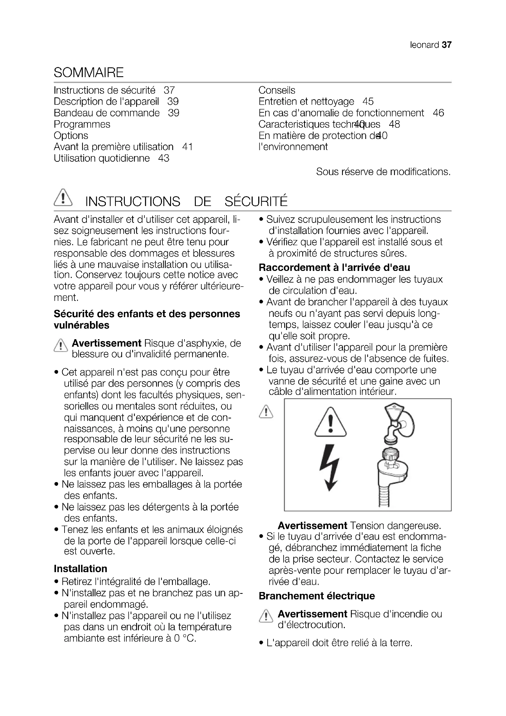 - Le tuyau d'arrivée d'eau comporte une vanne de sécurité et une gaine avec un cable d'alimentation interieur.