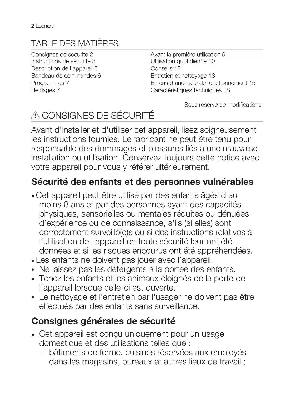 Retrouvez gratuitement la notice de l'appareil LI1325X Leonard au format PDF.