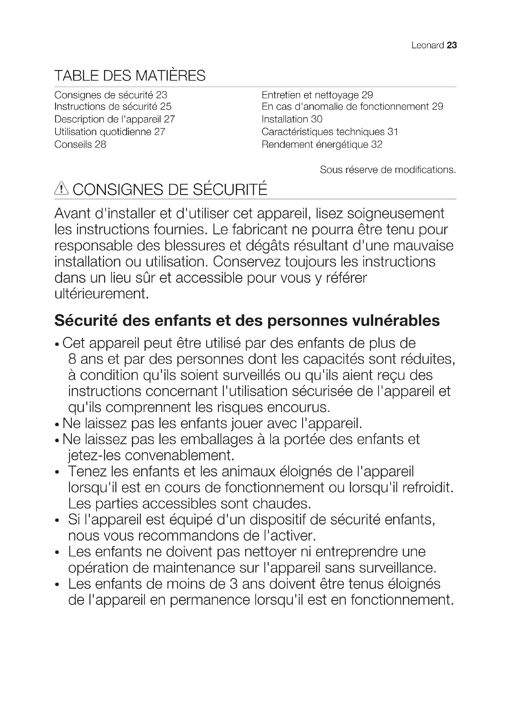 Consignes de sécurité 23